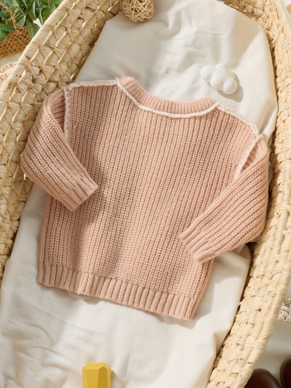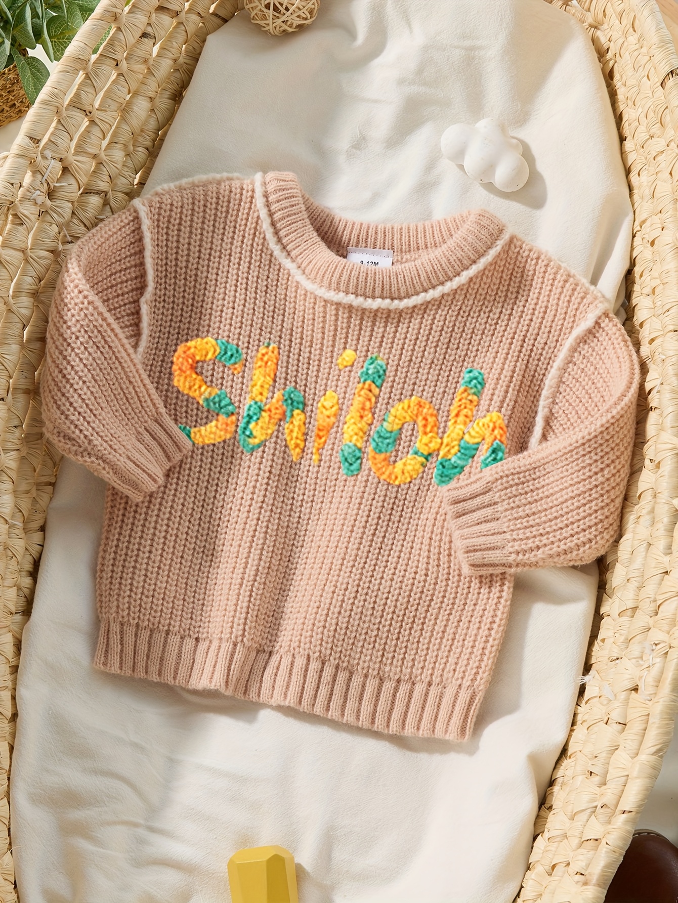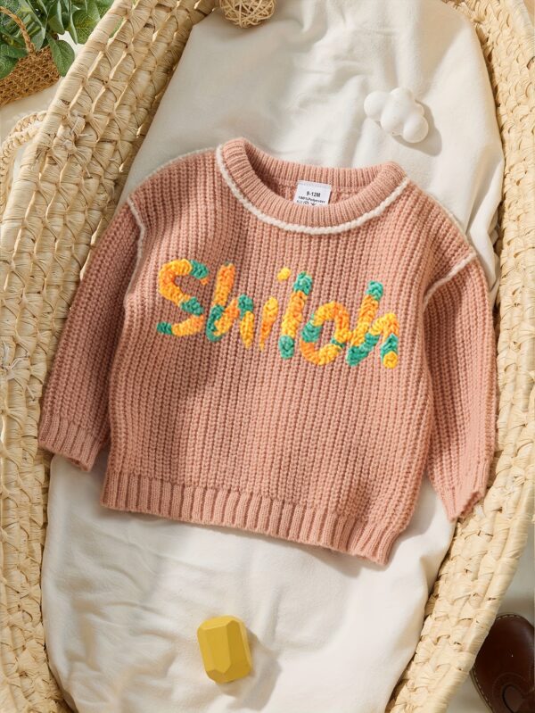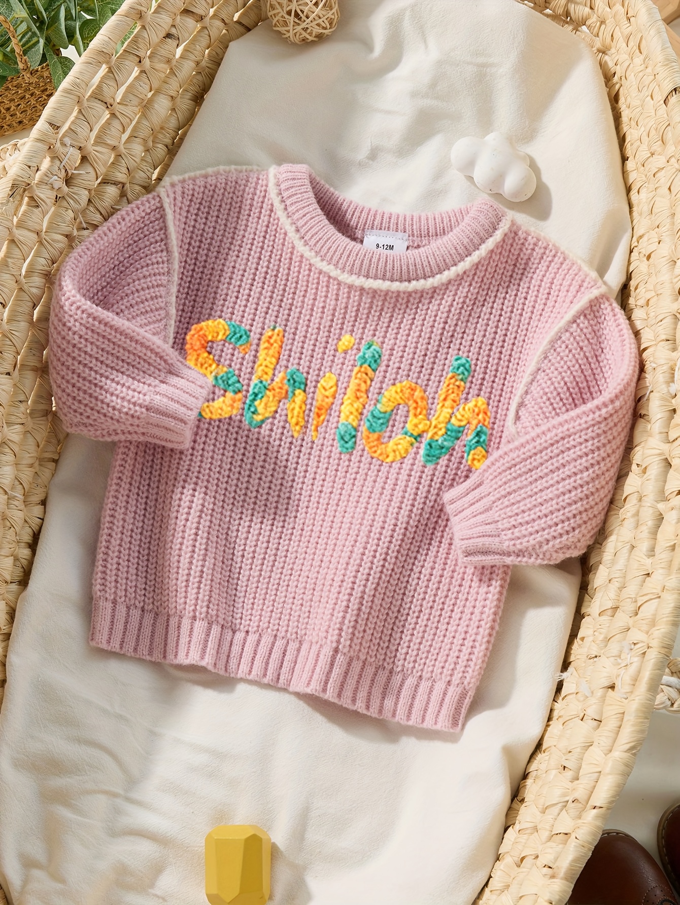 - لمسة شخصية ساحرة: اطلب هذا السويتر باللون الوردي الباستيل الرقيق وأضف اسم طفلك أو أي نص تحبه ليصبح قطعة فريدة تعكس شخصيته وتضيف لمسة خاصة إلى إطلالته.