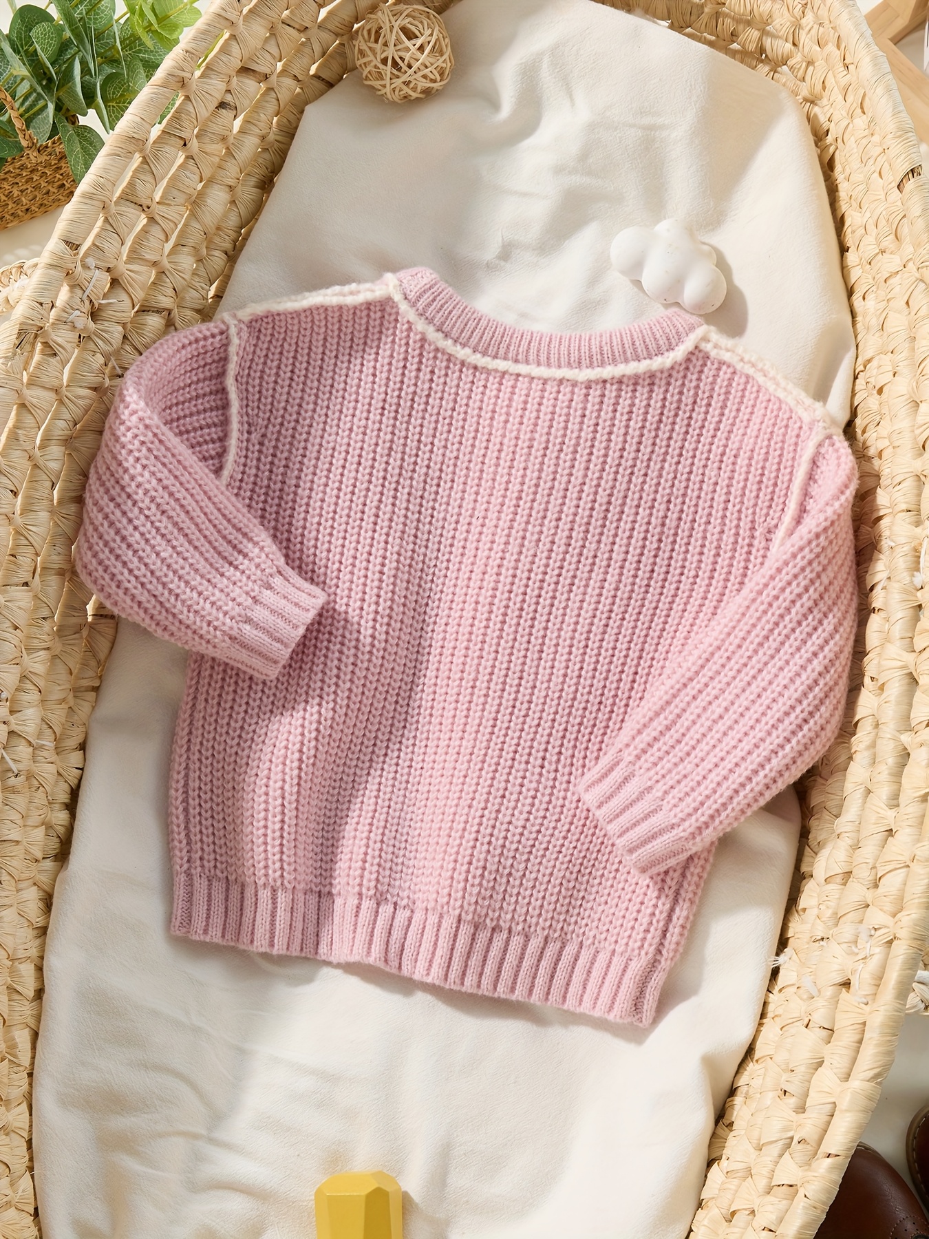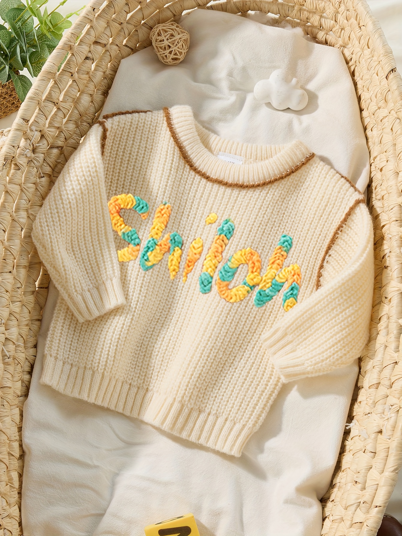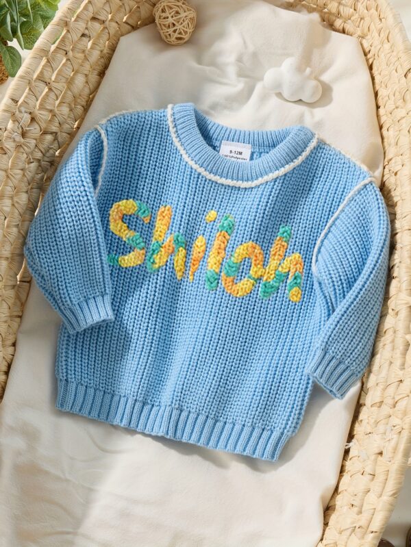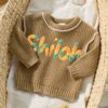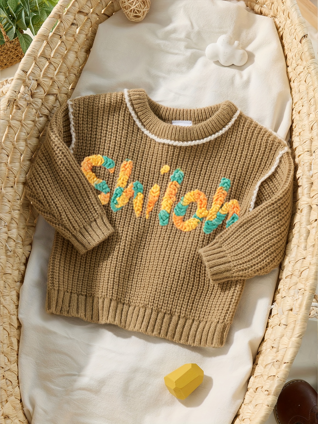 - لمسة شخصية ساحرة: اطلب هذا السويتر باللون الوردي الباستيل الرقيق وأضف اسم طفلك أو أي نص تحبه ليصبح قطعة فريدة تعكس شخصيته وتضيف لمسة خاصة إلى إطلالته.