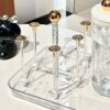 - التصميم المبتكر والموفر للمساحة: يتيح لك تعليق الأكواب والزجاجات رأسًا على عقب، مما يضمن تجفيفًا صحيًا وسريعًا، ويحرر مساحة قيّمة على سطح مطبخك أو خزانتك.