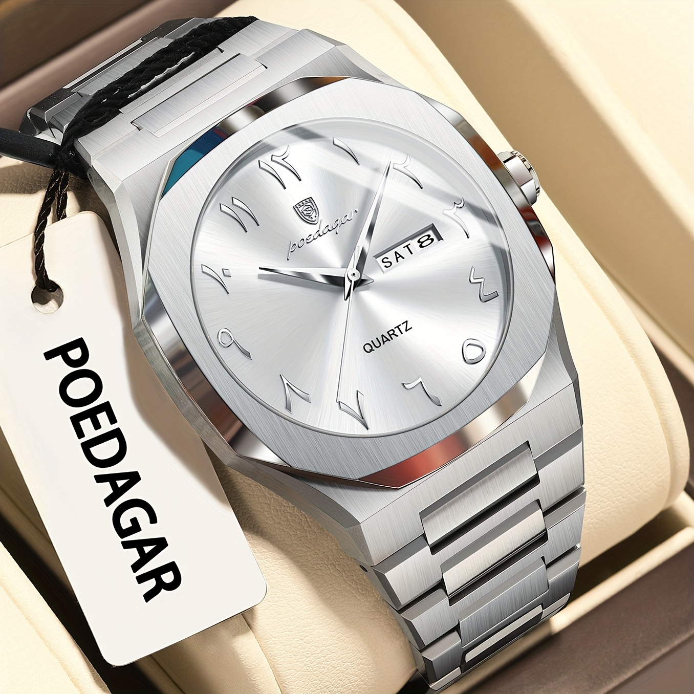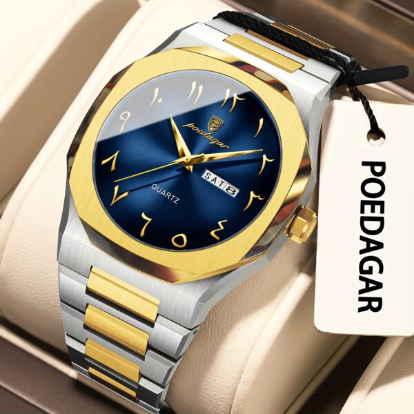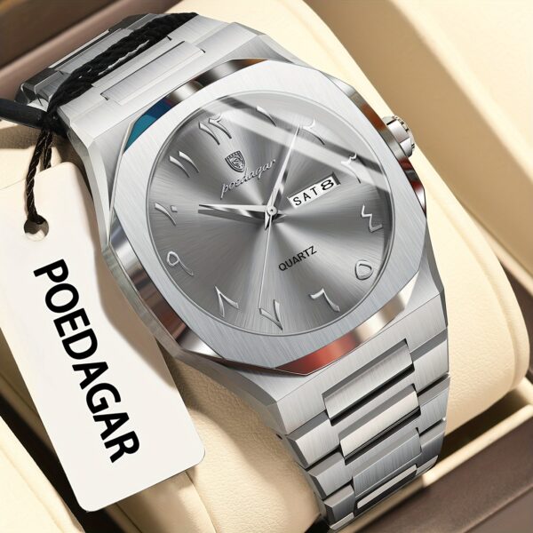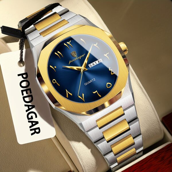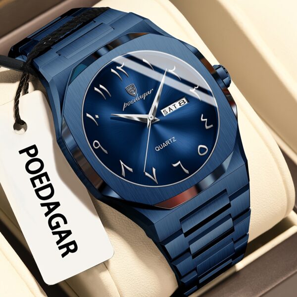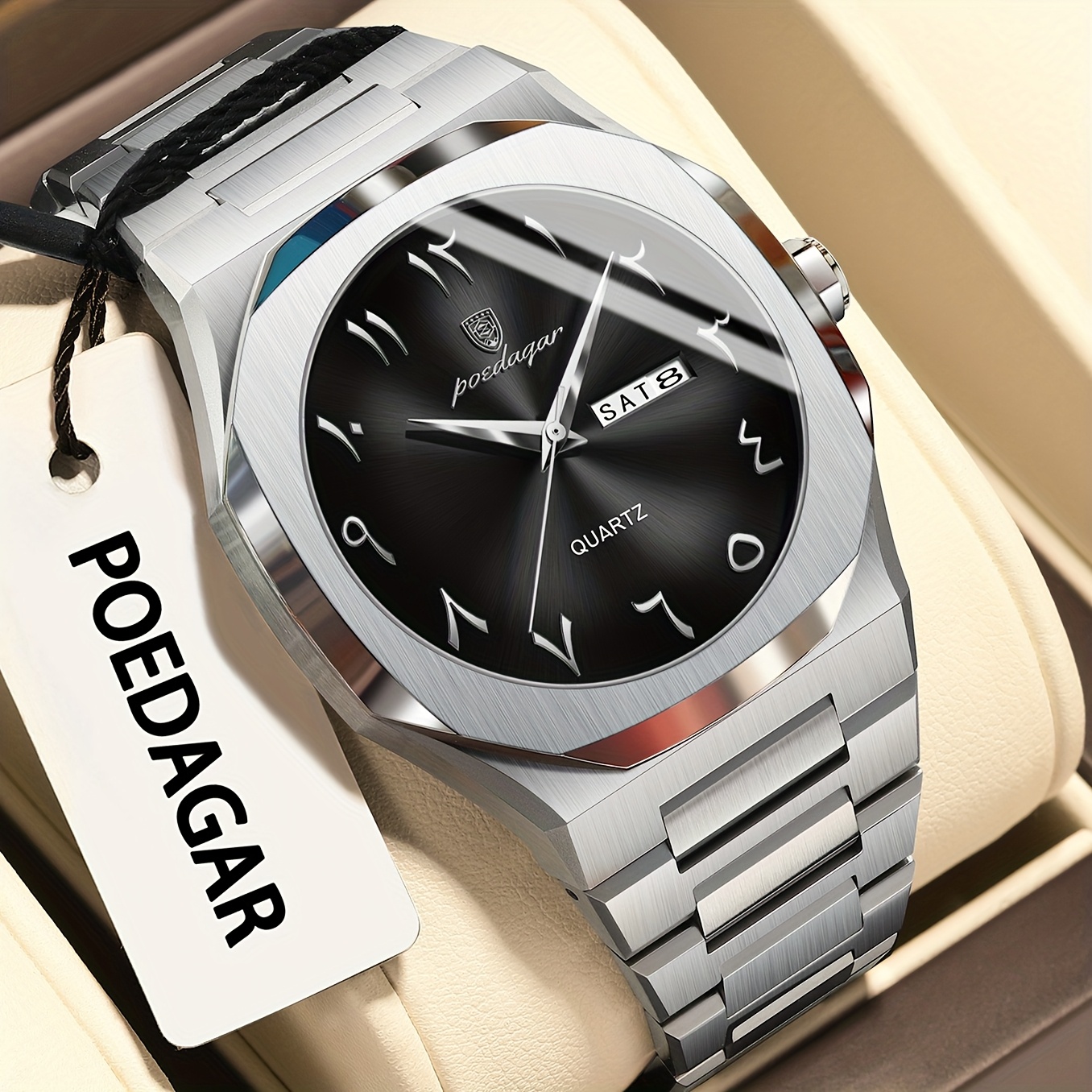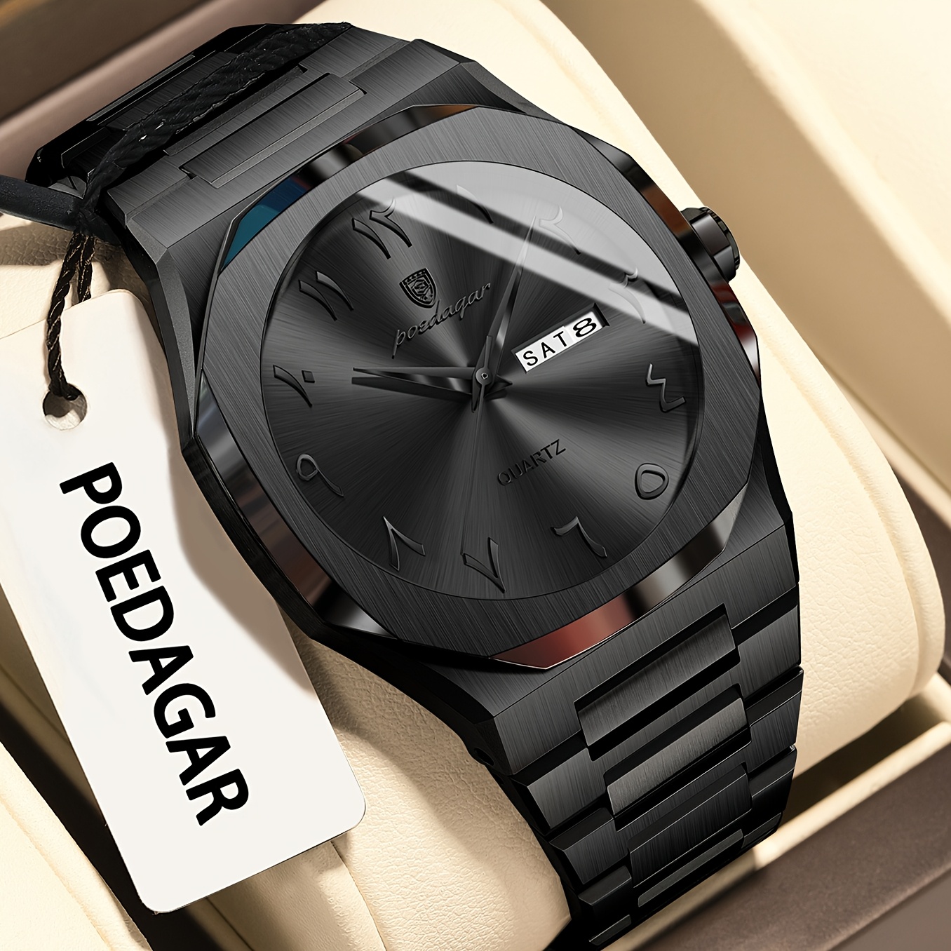 أبهر الجميع بلمسة من الفخامة الكلاسيكية والعملية مع ساعة POEDAGAR الرجالية. مصممة للرجل الذي يقدر الدقة والأناقة في كل تفصيل، هذه الساعة ليست مجرد أداة لقياس الوقت، بل هي تعبير عن شخصيتك الراقية وإضافة لا غنى عنها لمجموعتك.