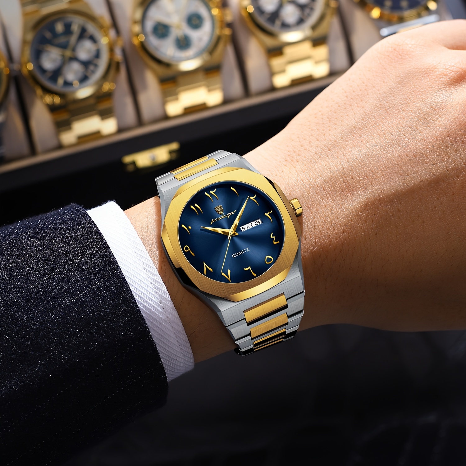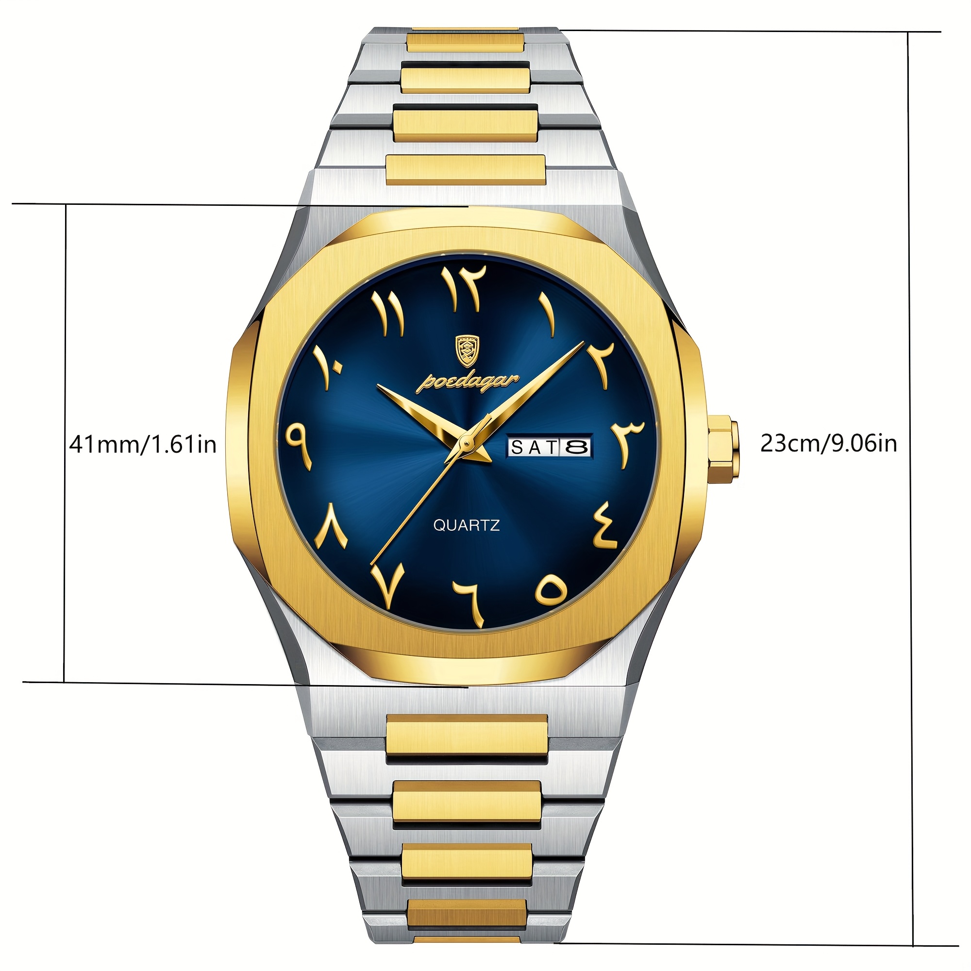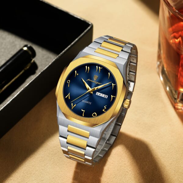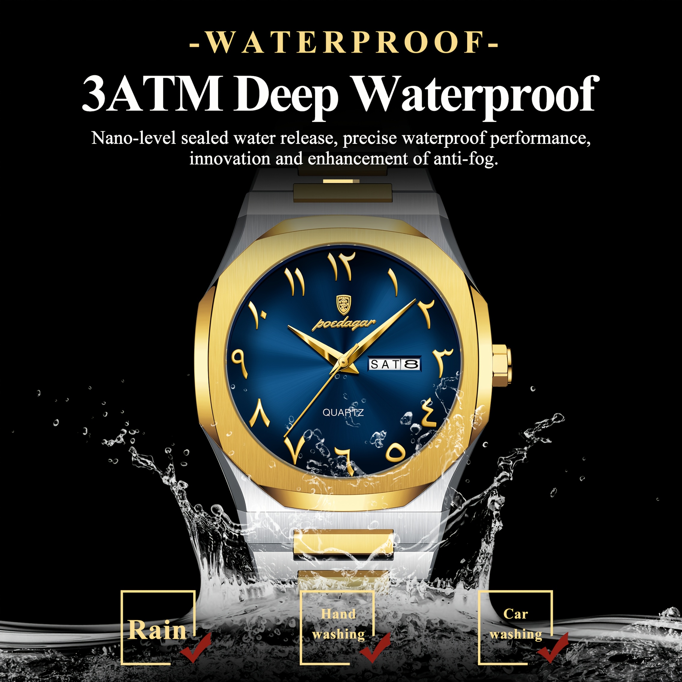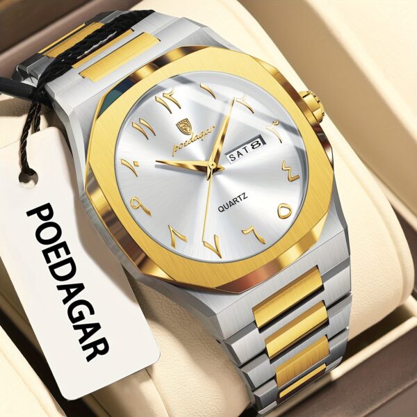 أبهر الجميع بلمسة من الفخامة الكلاسيكية والعملية مع ساعة POEDAGAR الرجالية. مصممة للرجل الذي يقدر الدقة والأناقة في كل تفصيل، هذه الساعة ليست مجرد أداة لقياس الوقت، بل هي تعبير عن شخصيتك الراقية وإضافة لا غنى عنها لمجموعتك.