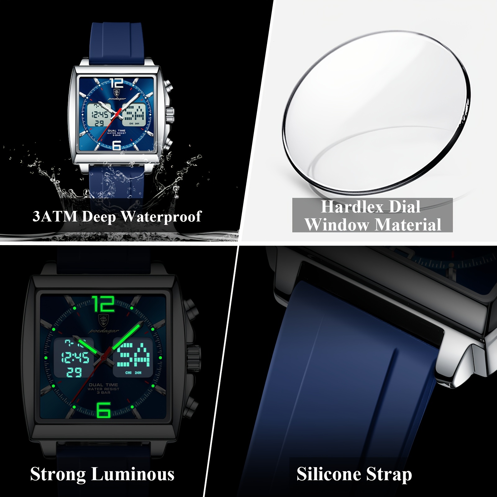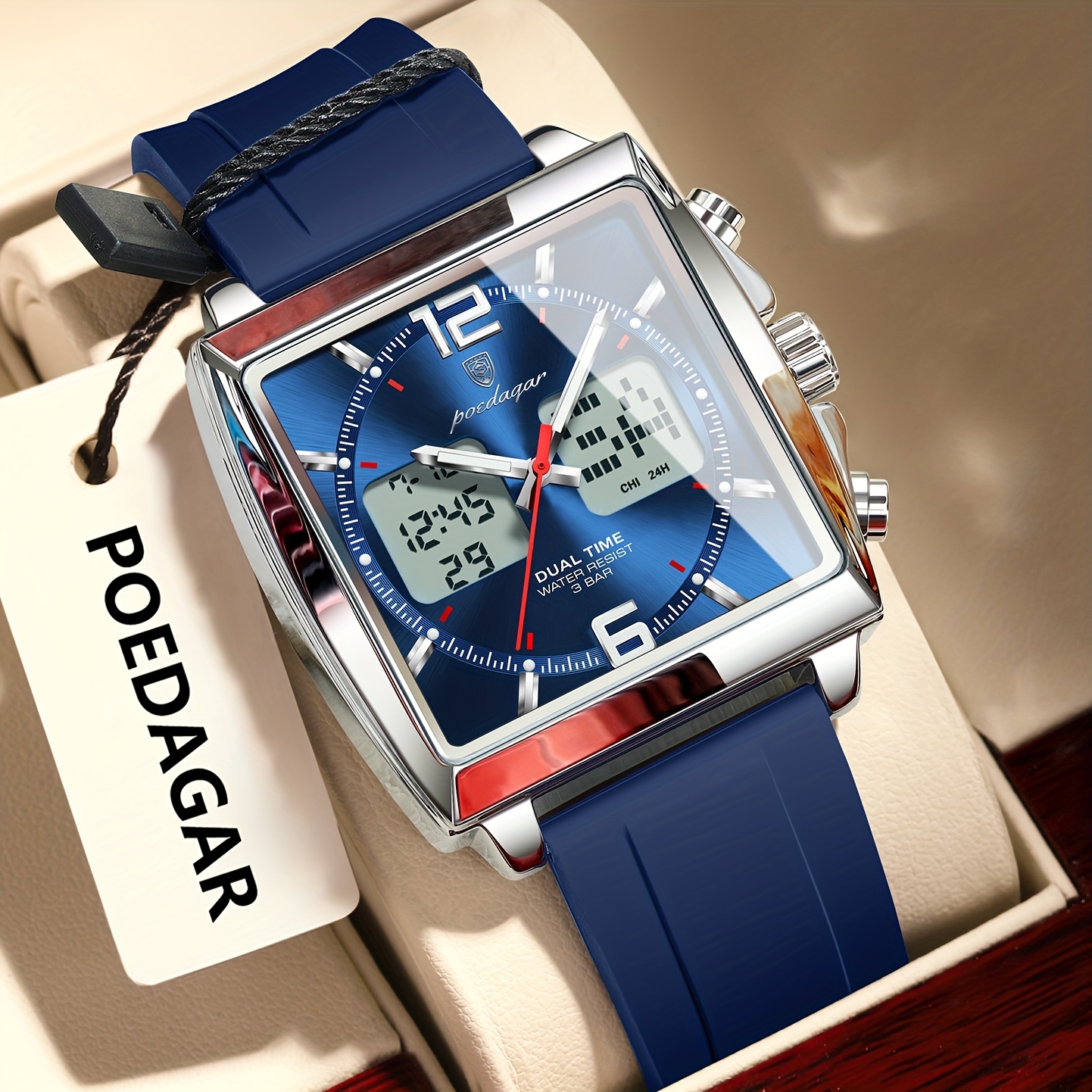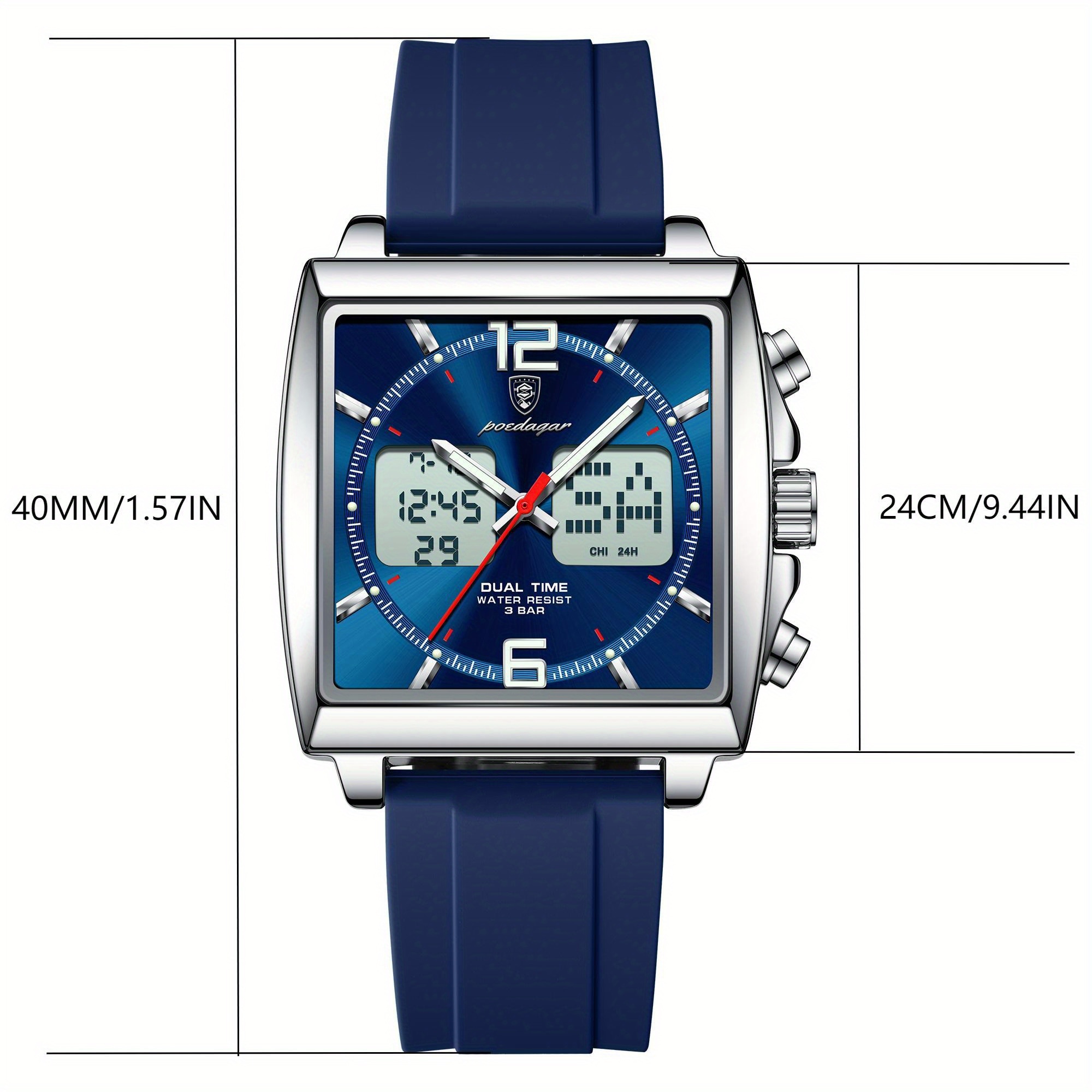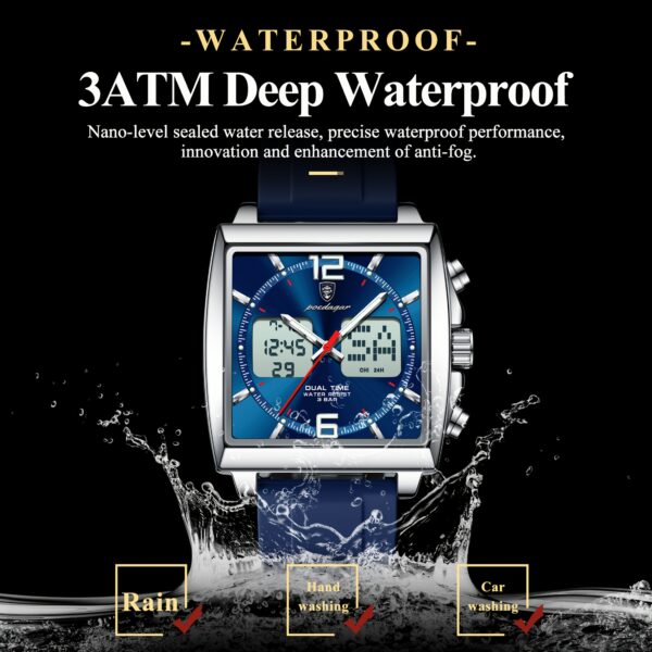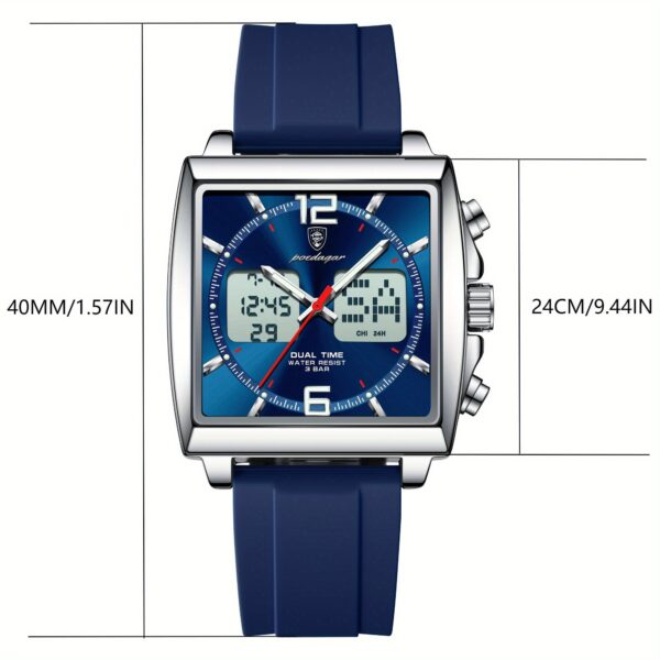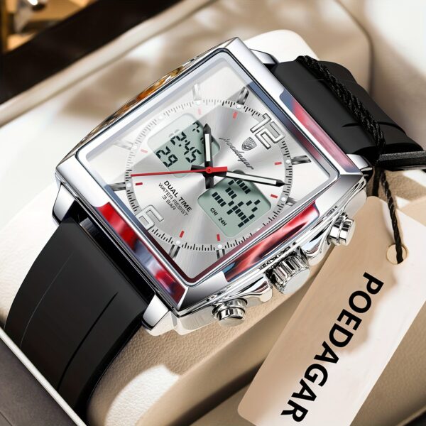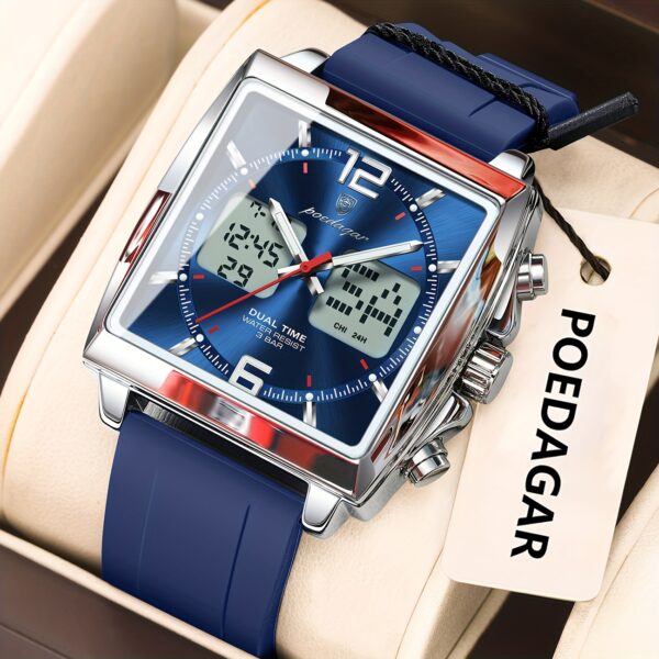 اكتشف ساعة POEDAGAR الرقمية، تحفة فنية تلتقي فيها الدقة المتناهية بالتصميم الجريء، لتكون رفيقك المثالي في كل مناسبة. مصممة للرجل العصري الذي يقدر الجودة والأداء، هذه الساعة لا تخبرك بالوقت فحسب، بل تمكنك من التحكم به والعيش كل لحظة بتفاصيلها. استمتع بمزيج فريد من الأناقة العصرية والوظائف المتطورة التي تجعلها الاختيار الأمثل لأسلوب حياتك الديناميكي.