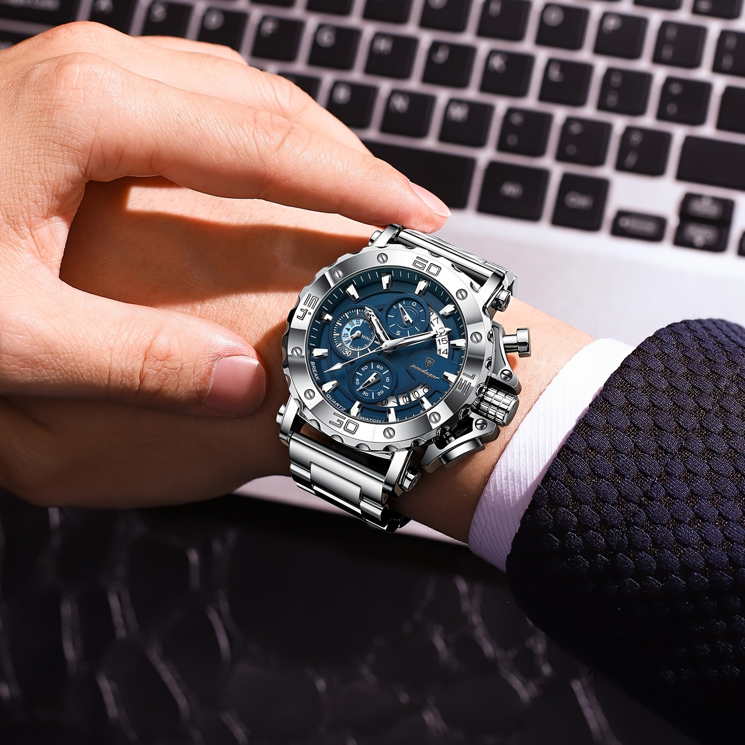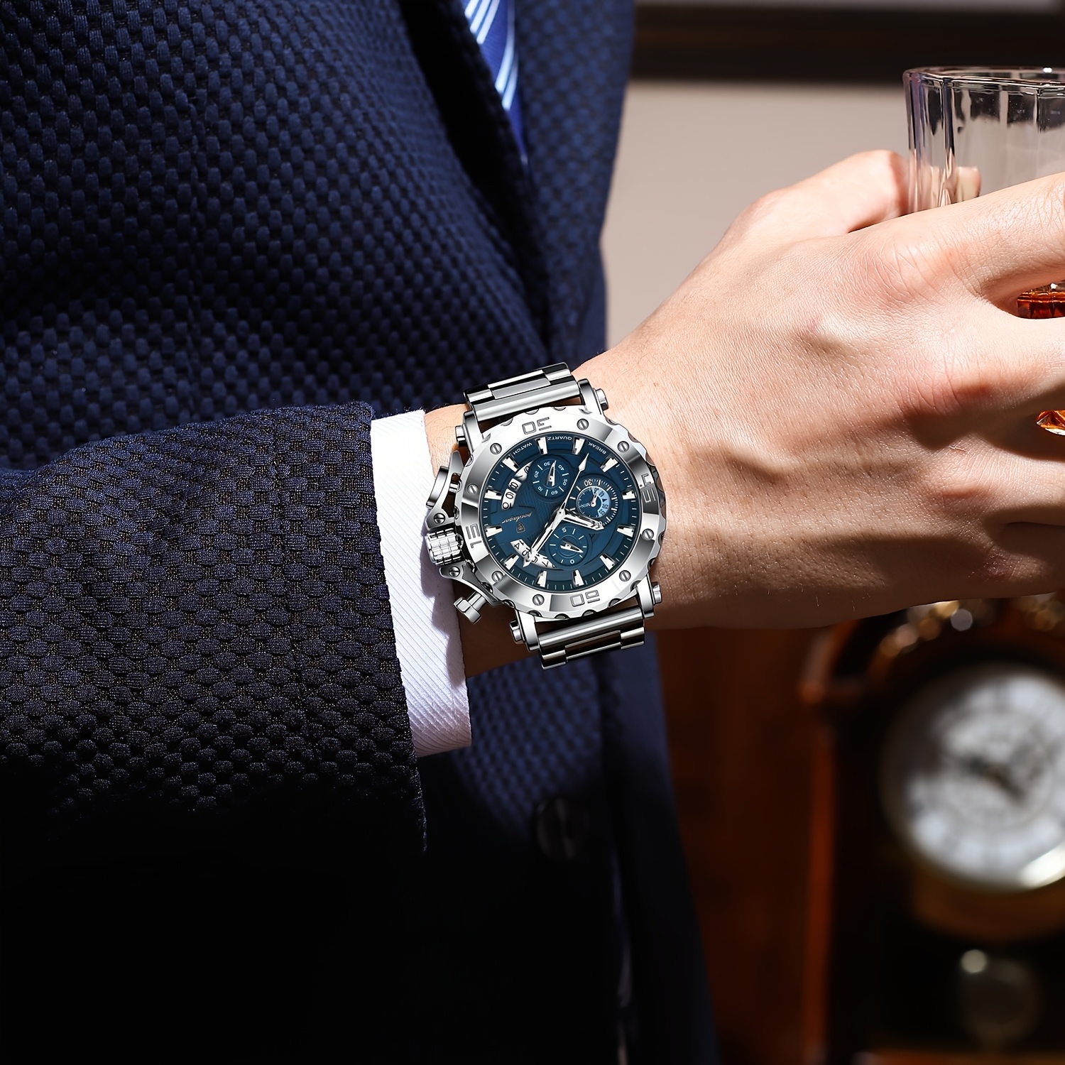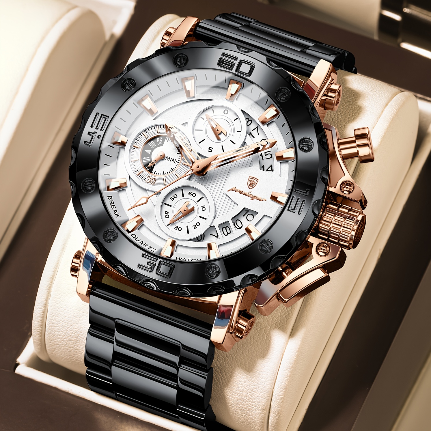ارتقِ بمظهرك ودقتك مع هذه الساعة الرجالية الفاخرة، المصممة خصيصًا للرجل العصري الذي يقدر الأناقة والوظائف المتعددة. سواء كنت في اجتماع عمل مهم، أو لقاء غير رسمي، أو تسعى لإضافة لمسة راقية لإطلالتك اليومية، هذه الساعة هي الخيار الأمثل لتعبّر عن شخصيتك الاستثنائية وتترك انطباعًا لا يُنسى.