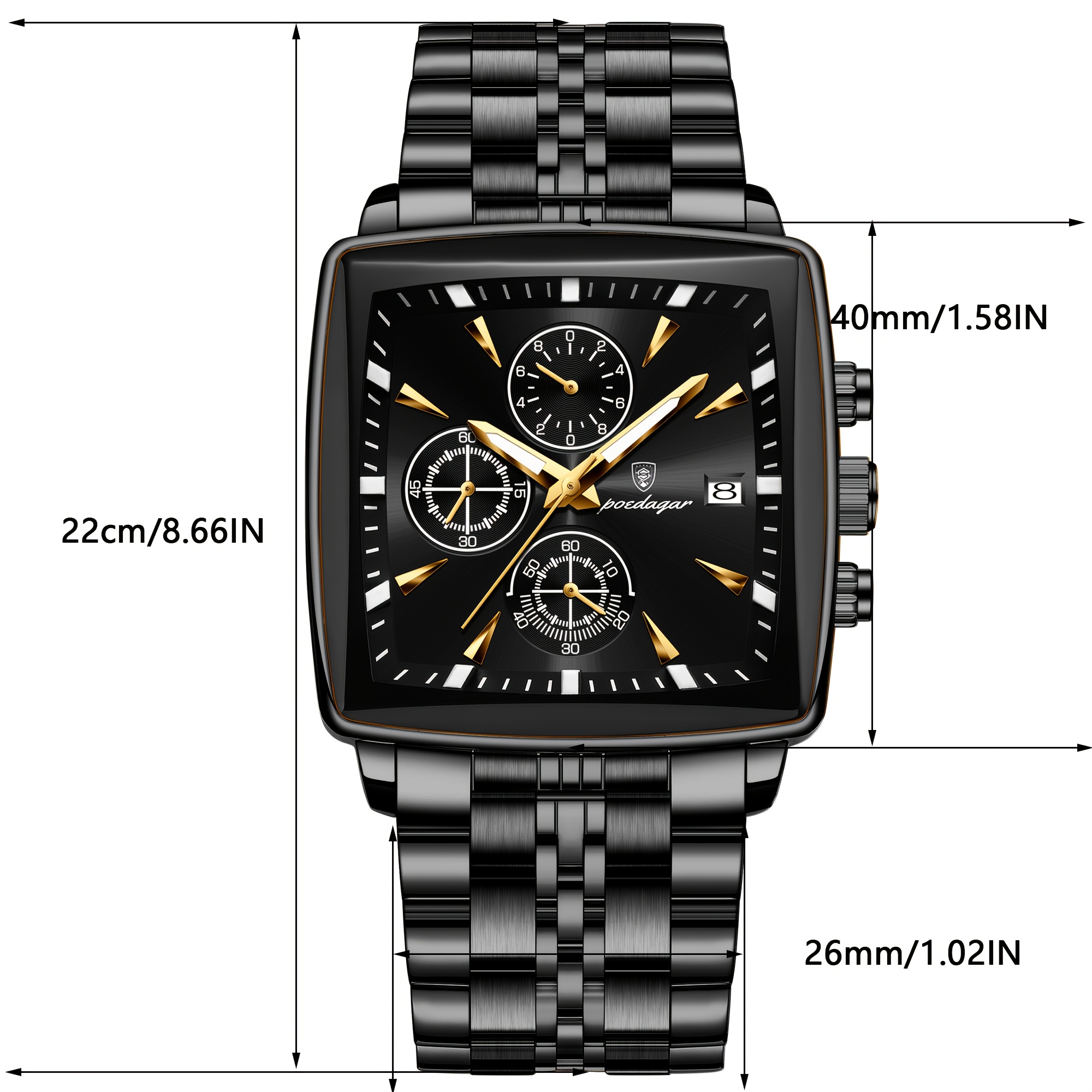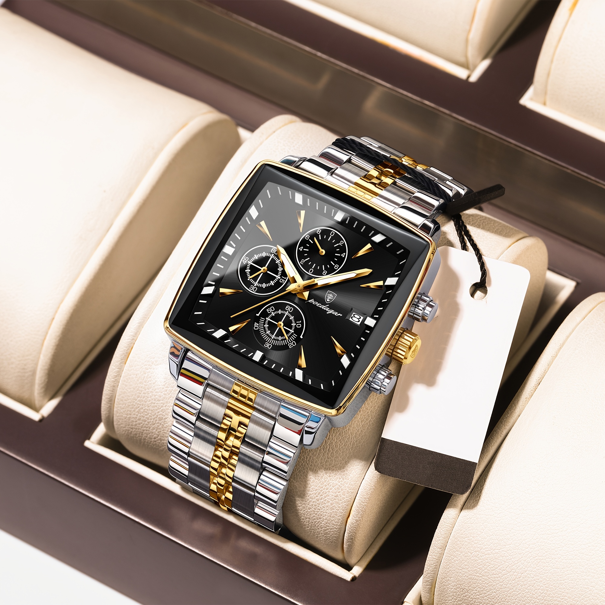 ارتقِ بمظهرك وأضف لمسة من الرقي الخالد إلى معصمك مع ساعة POEDAGAR الرجالية الفاخرة. هذه الساعة ليست مجرد أداة لمعرفة الوقت، بل هي تعبير عن ذوقك الرفيع وشغفك بالجودة والتصميم المتقن. صُممت لتلبي تطلعات الرجل العصري الذي يبحث عن الأناقة في كل تفاصيل حياته، من اجتماعات العمل الهامة إلى اللحظات اليومية المريحة.