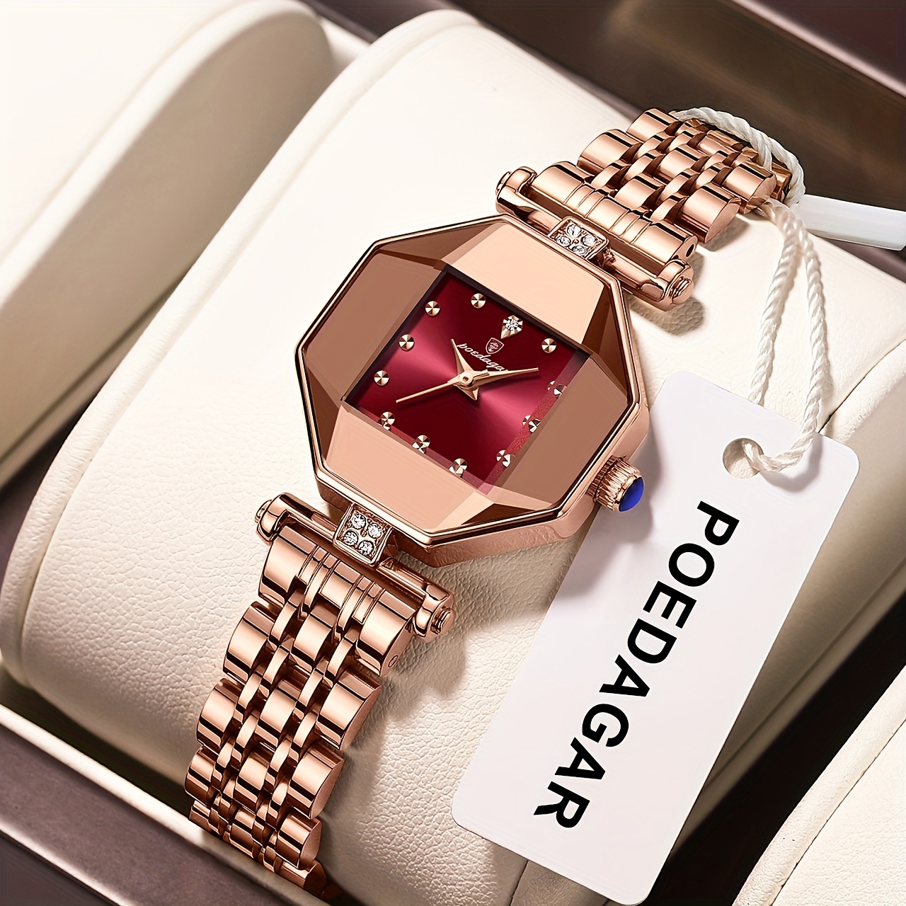اكتشفي ساعة POEDAGAR 柏达茄 النسائية المربعة، تحفة فنية تجمع بين الأناقة العصرية والأداء الموثوق. مصممة لتكون رفيقتك المثالية في كل مناسبة، تضيف هذه الساعة لمسة من الرقي والفخامة إلى إطلالتك.