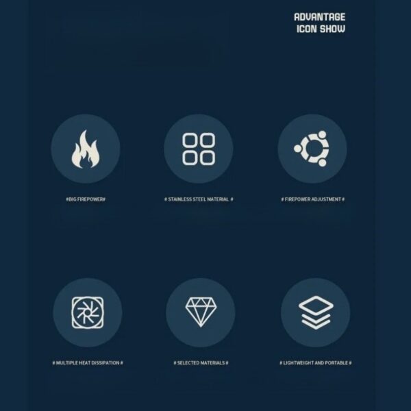 • إشعال بيزو-سيراميك فوري وآمن: وداعاً للمتاعب! بضغطة زر واحدة، يشتعل الجهاز بسرعة وبأمان بفضل نظام الإشعال المتقدم، مما يوفر لك وقتًا وجهدًا ثمينًا في مغامراتك.