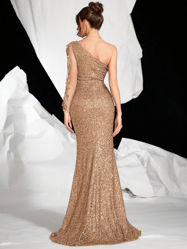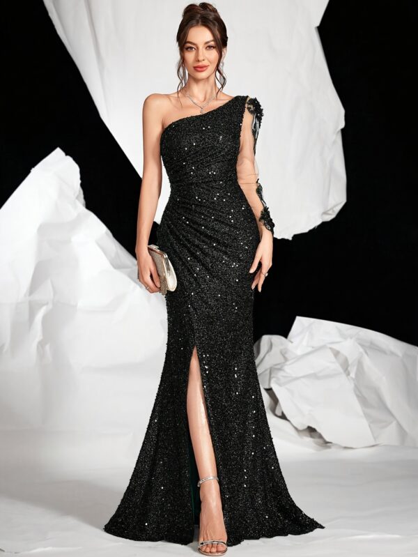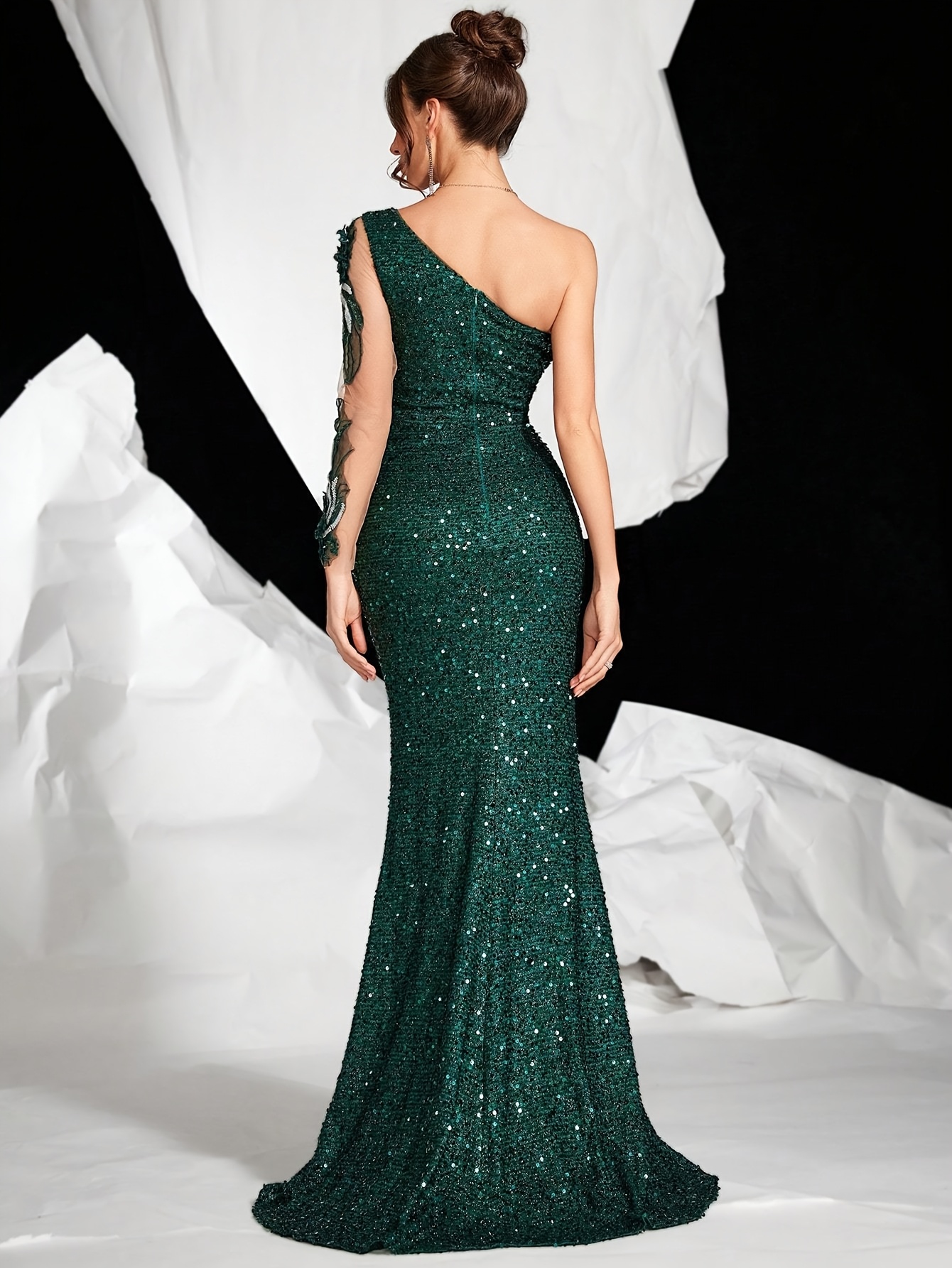 • تصميم فريد وجذاب: يتميز بقصة حورية البحر الأنيقة التي تبرز منحنيات الجسم بجمال، مع تفصيلة الكتف الواحد العصرية وقصة العنق غير المتماثلة التي تضيف لمسة من الجرأة والرقي.