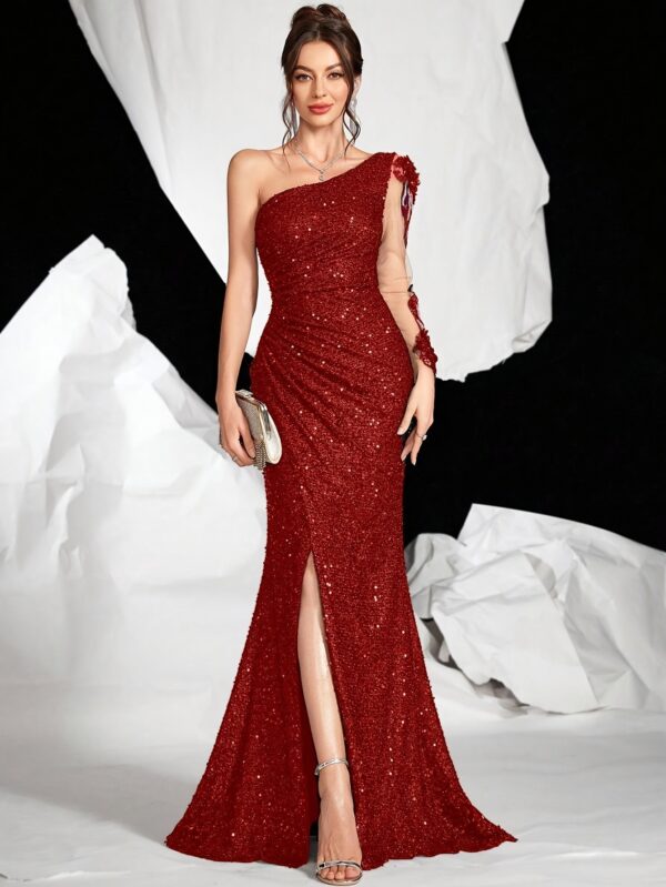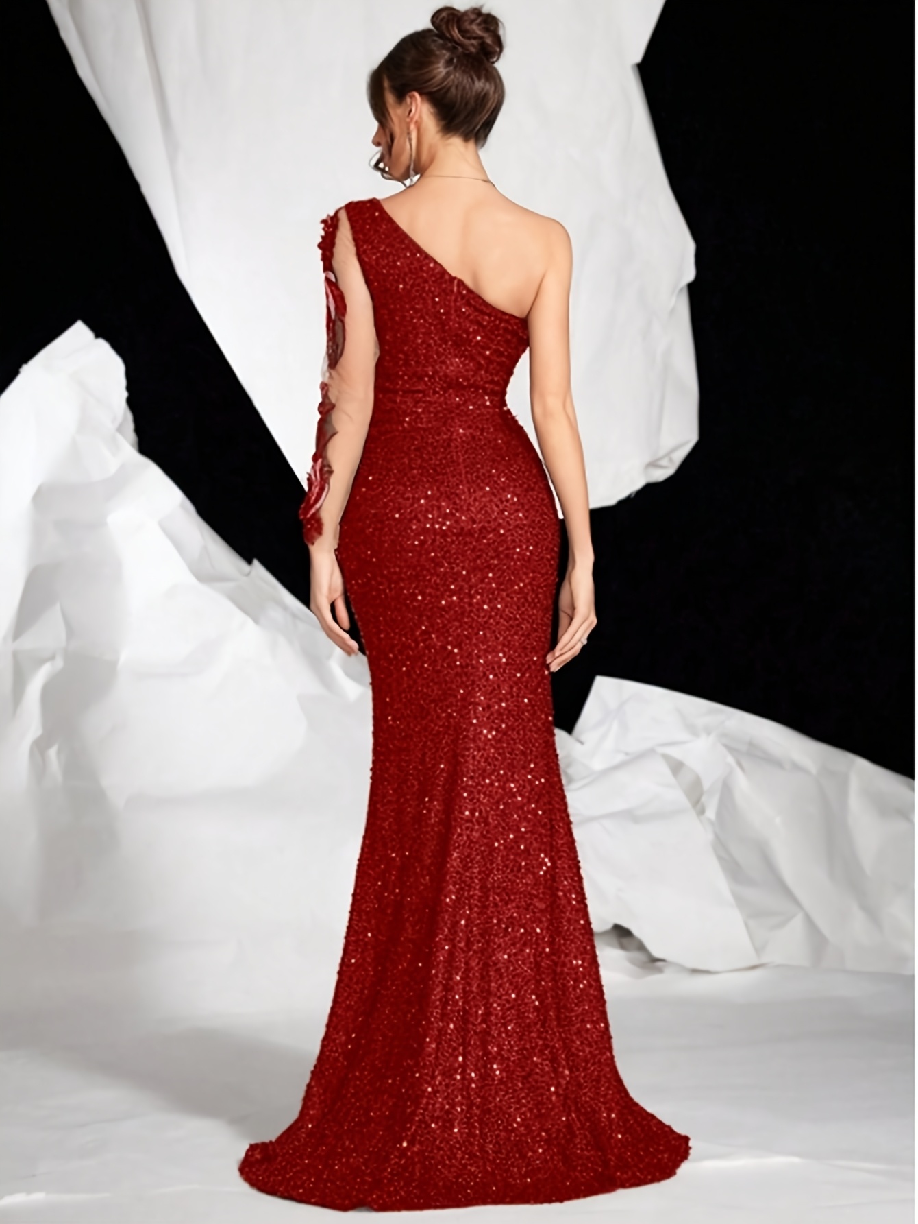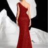 تألقي بفستان السهرة الأحمر المبهر ذو الكتف الواحد وقصة حورية البحر – الأناقة المطلقة لكل مناسبة