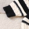 • تصميم مخطط كلاسيكي وعصري: يتميز بخطوط أفقية أنيقة باللونين الأسود والأبيض، ليمنح صغيرك إطلالة جذابة وعصرية تناسب مختلف المناسبات، ويسهل تنسيقه مع أي ملابس أخرى.