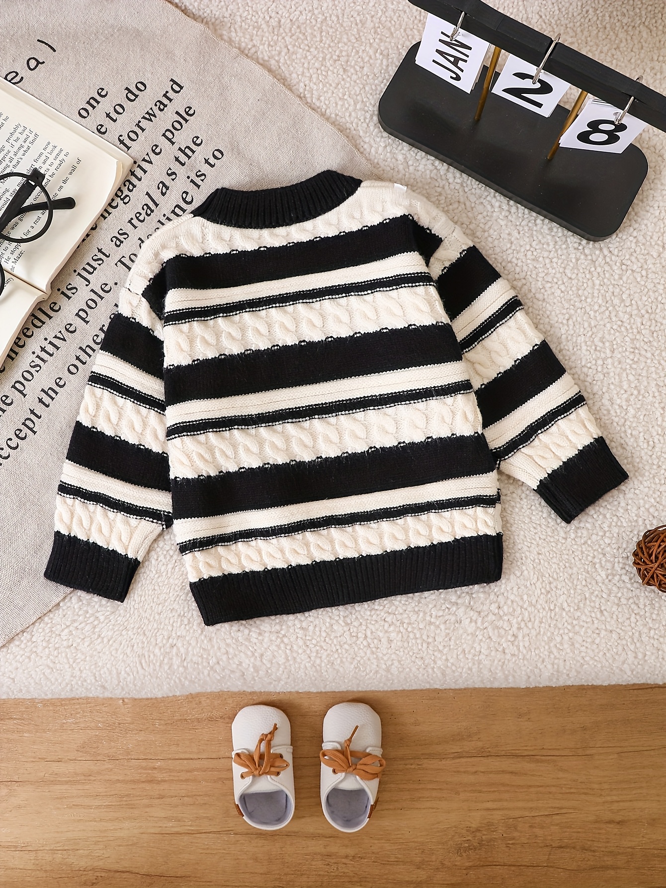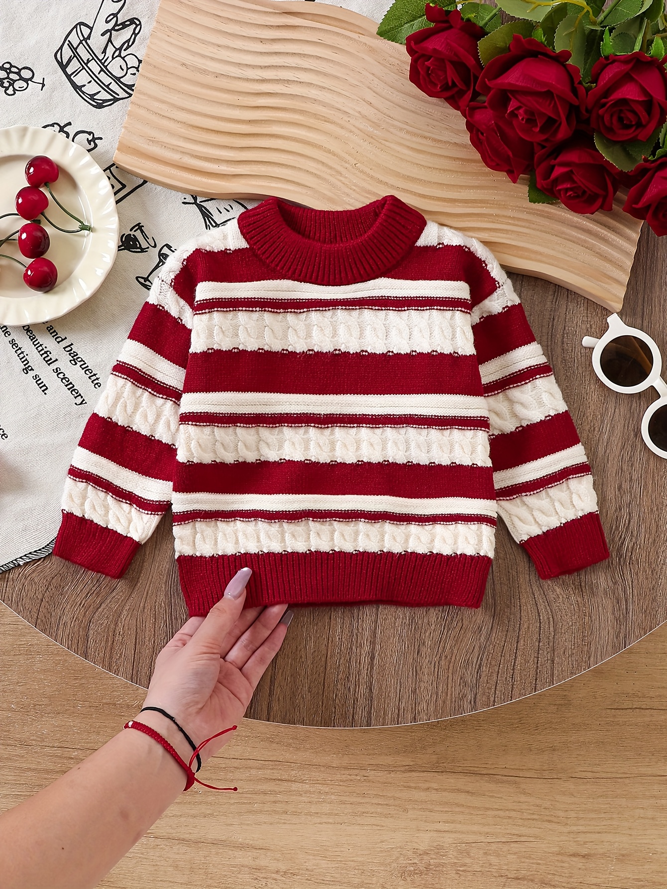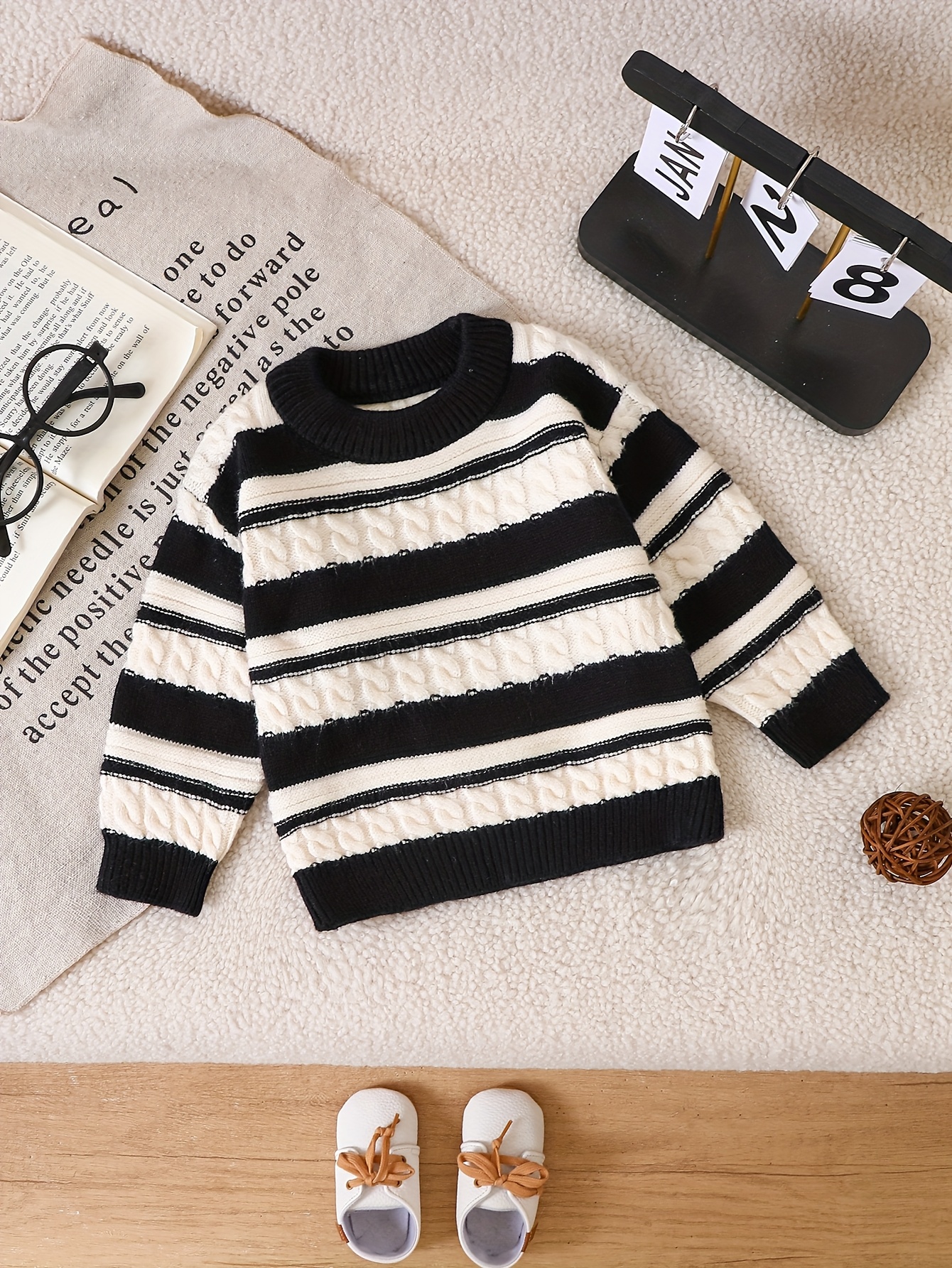 دفء وأناقة صغارك: سويتر مخطط كلاسيكي لمواسم البرد