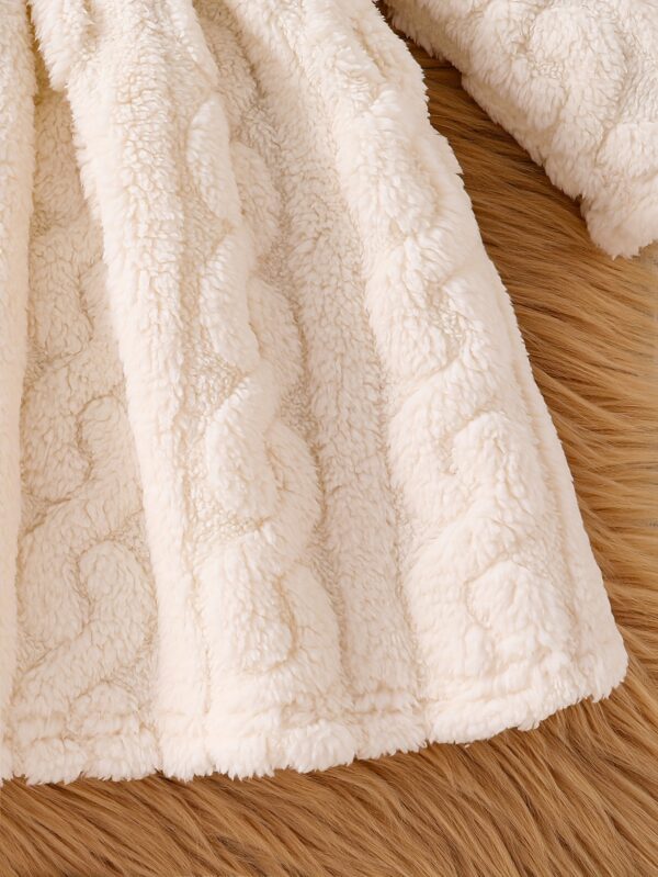 • خامة فاخرة وناعمة: مصنوع من نسيج شيربا بوليستر فائق النعومة والمخملية، يلامس بشرة طفلتك بلطف ويمنحها دفئًا استثنائيًا ومريحًا طوال اليوم.