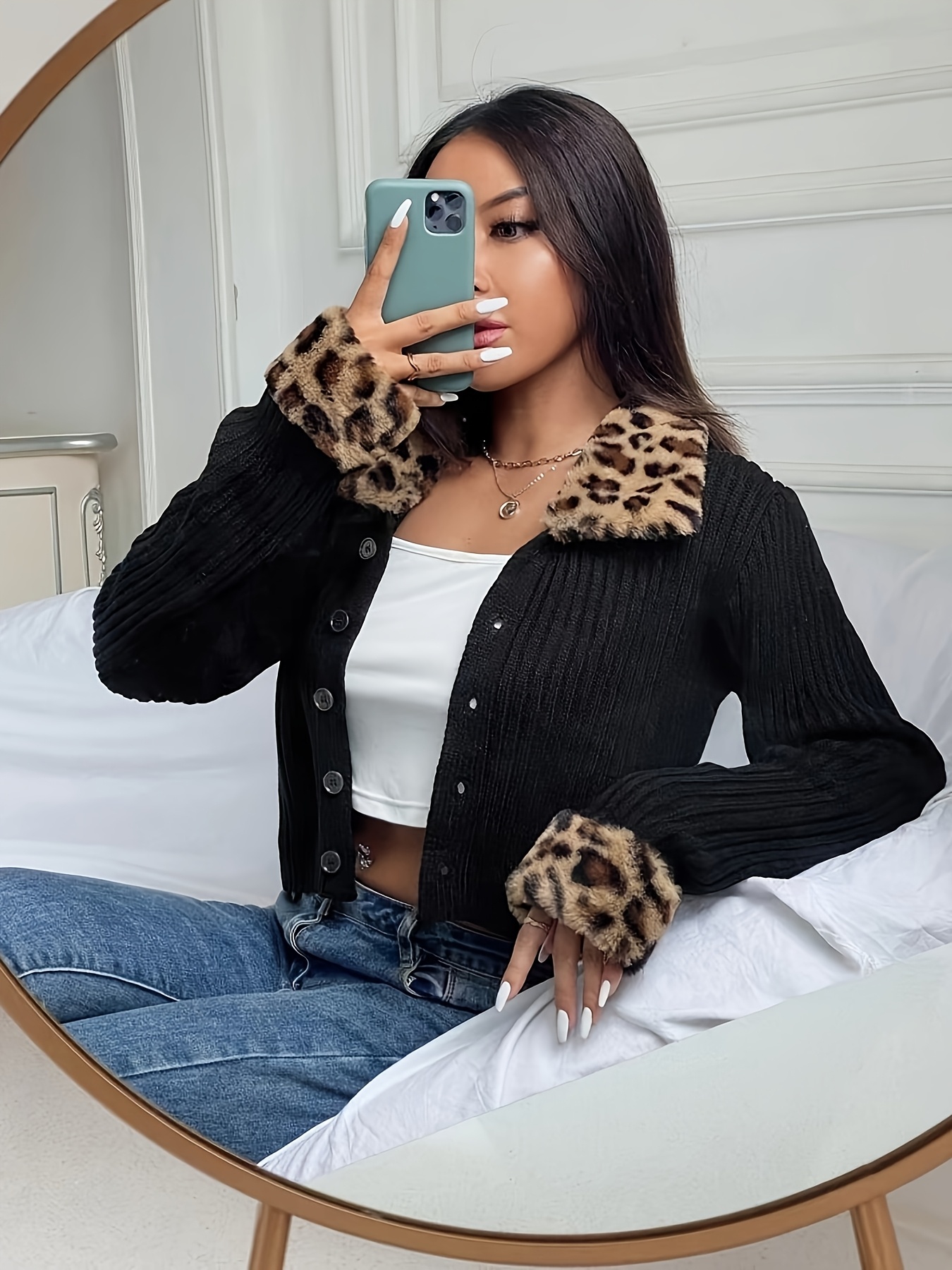 - تفاصيل جذابة: يزدان بنمط جلد النمر الجريء مع إغلاق أمامي بأزرار، ليضفي عليكِ طابعًا فريدًا وجذابًا.