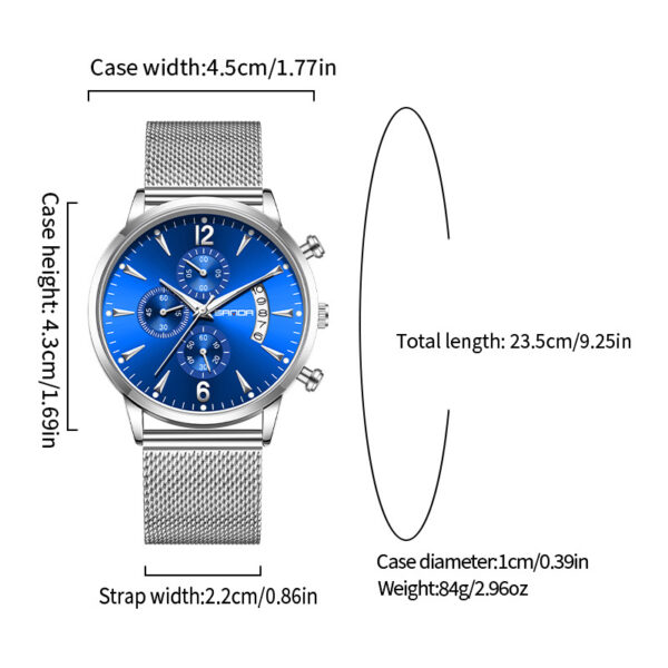 هل تبحث عن ساعة تجمع بين الأناقة العصرية والأداء الموثوق؟ نقدم لك ساعة اليد الرجالية المثالية التي صُممت لتلبي جميع احتياجاتك. بفضل تصميمها الأنيق وجمالها البسيط ووظائفها المتعددة، ستكون رفيقك الأمثل في كل لحظة، سواء كنت في اجتماع عمل، تمارس الرياضة، أو تستمتع بيوم عطلة. هذه الساعة ليست مجرد أداة لمعرفة الوقت، بل هي تعبير عن ذوقك الرفيع وأسلوب حياتك العصري.