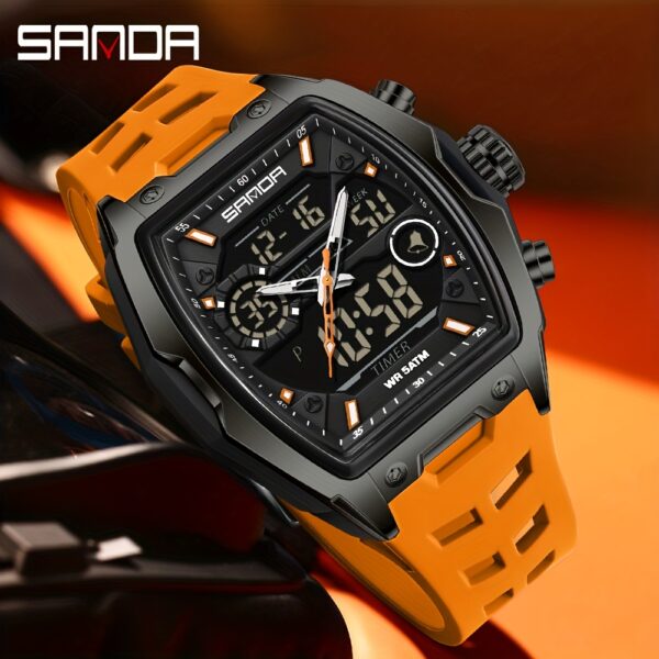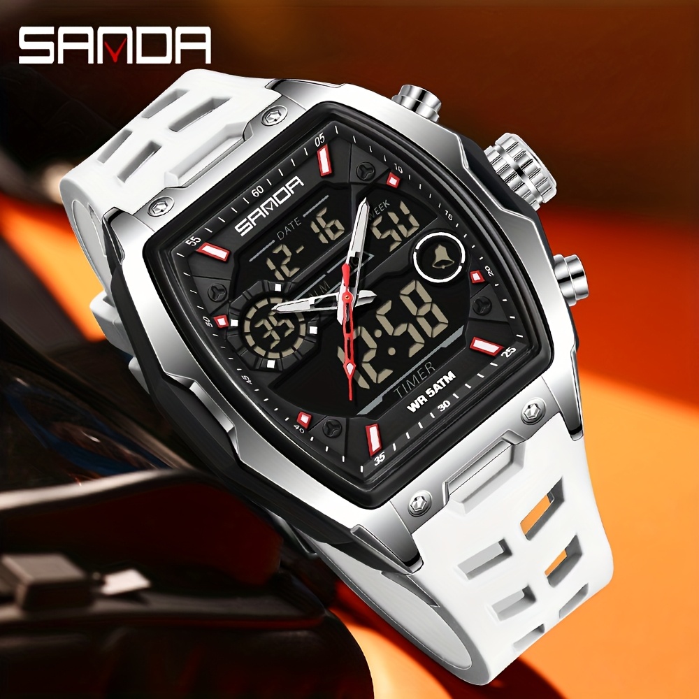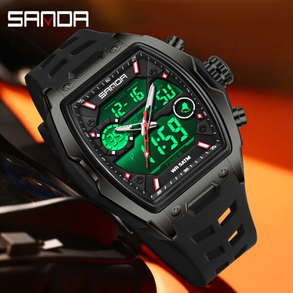 - شاشة عرض مزدوجة مبتكرة: شاهد الوقت بأسلوبك الخاص مع شاشة عرض تناظرية كلاسيكية ورقمية عصرية، يبرزها قرص أسود جذاب بلمسات حمراء جريئة تضفي طابعاً فريداً ومميزاً على معصمك.