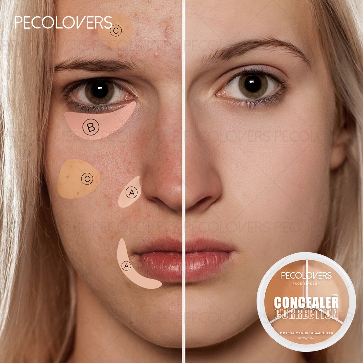 Discover the secret to flawless skin with the PECOLOVERS 3-Color Cream Concealer Palette. This all-in-one palette is designed to give you professional, effective coverage for all skin concerns, suitable for all skin types.