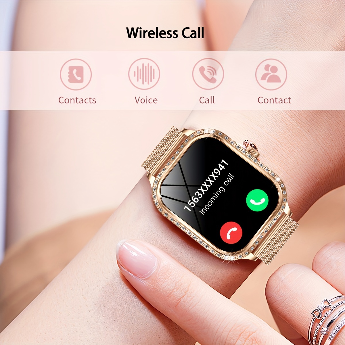 - تواصل ذكي ومكالمات لاسلكية: مع تقنية البلوتوث اللاسلكي 5.2 المتقدمة، يمكنك إجراء واستقبال المكالمات مباشرة من معصمك، بالإضافة إلى مراجعة الرسائل والإشعارات بسهولة. ابقِ على اتصال دائم دون الحاجة لإخراج هاتفك.