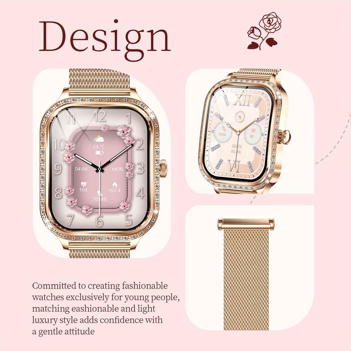 - تصميم ساحر ومواد فاخرة: تتميز ساعة SENBONO بهيكل مصنوع من سبيكة معدنية متينة وحزام أنيق من الفولاذ المقاوم للصدأ، مما يمنحها مظهرًا راقيًا وفاخرًا يتماشى مع أسلوبك. كما يمكنك تخصيص واجهة الساعة بخلفيات قابلة للتبديل وحتى تصميم واجهاتك الخاصة لتعبّري عن شخصيتك الفريدة.