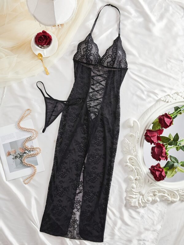 تألقي بسحر لا يقاوم: طقم حورية البحر الفاخر من الدانتيل الشفاف