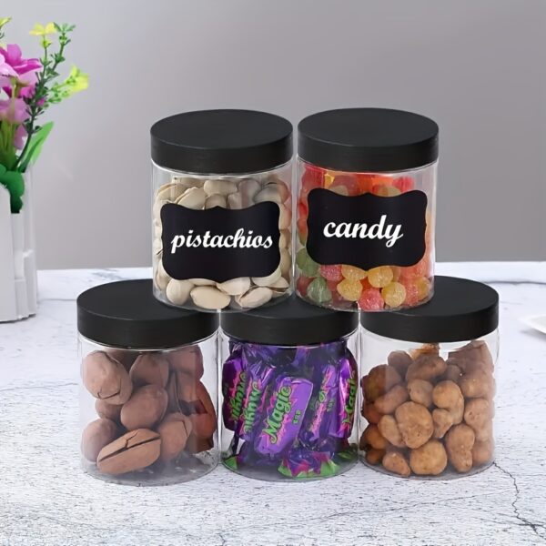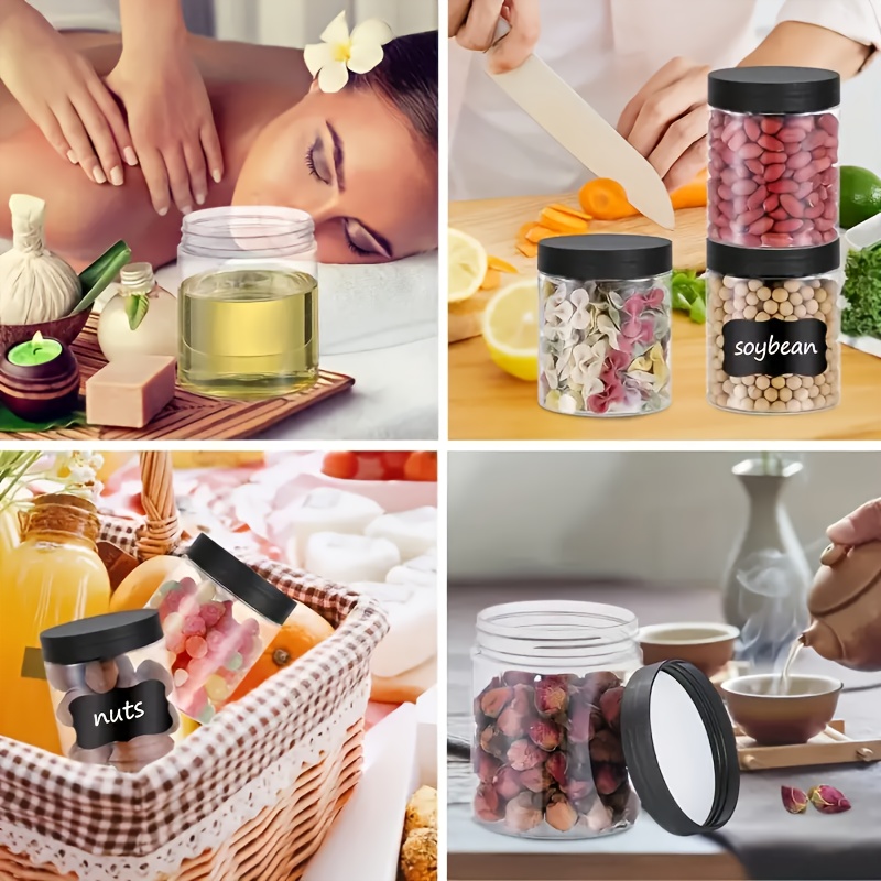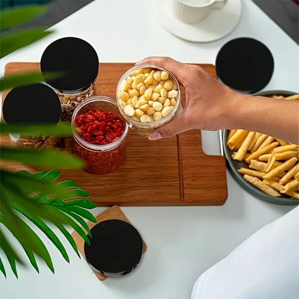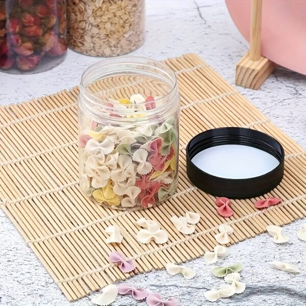 - أغطية سوداء محكمة الغلق: مزودة بأغطية قوية ومحكمة الإغلاق تضمن الحفاظ على نضارة وجودة محتوياتك ومنع أي تسرب، سواء كانت توابل، عسل، مستحضرات، أو مواد حرفية.