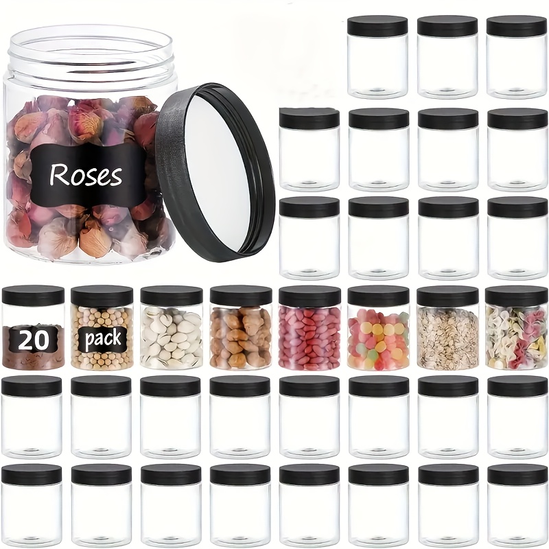اجعل حياتك أسهل وأكثر تنظيمًا مع مجموعة برطمانات التخزين الشفافة الفاخرة المكونة من 20 قطعة! مصممة لتلبية جميع احتياجاتك، من المطبخ إلى ركن الحرف اليدوية، توفر لك هذه البرطمانات الحل الأمثل للحفاظ على أغراضك منظمة، آمنة، وفي متناول اليد. وداعًا للفوضى ومرحبًا بالترتيب العملي والأنيق الذي يدوم طويلاً.