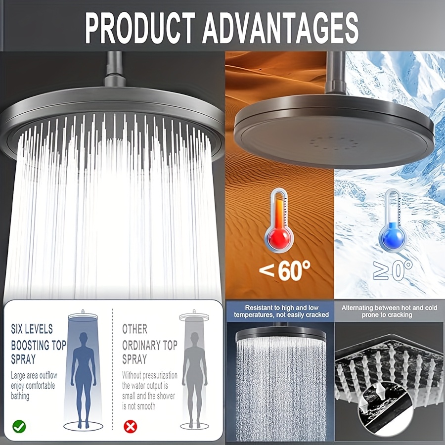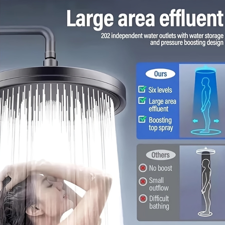 • ضغط ماء عالٍ وتغطية واسعة: تصميم متقن يضمن لك تدفقًا قويًا وكافيًا للمياه يُغطي الجسم بالكامل، مما يضمن تجربة استحمام فعالة ومنعشة تُرضي حواسك وتُشعرك بالنظافة الفائقة.