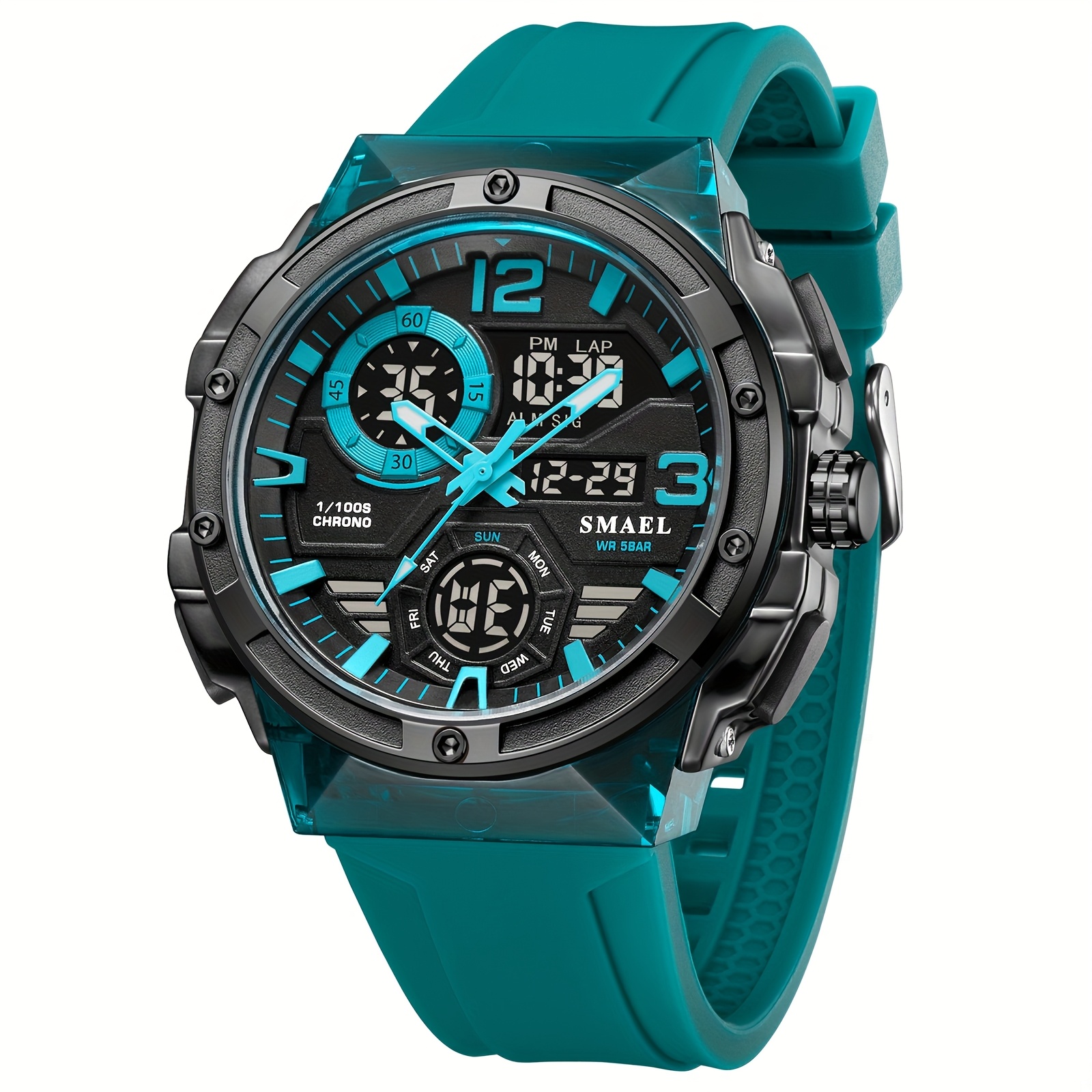 • وظائف متعددة تلبي احتياجاتك: أكثر من مجرد ساعة! مزودة بكرونومتر دقيق لحساب الأوقات، منبه لتذكيرك بمواعيدك المهمة، مؤقت للعد التنازلي، ووظيفة عرض مناطق زمنية متعددة لتناسب المسافرين أو من يتعاملون مع فروق التوقيت.
