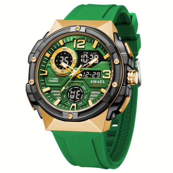 • دقة متناهية وشاشة عرض واضحة: تعتمد على حركة كوارتز رقمية فائقة الدقة لتضمن لك التوقيت الصحيح دائمًا. تتميز بشاشة عرض رقمية واضحة ومضيئة تسمح بقراءة الوقت بسهولة في أي ظروف إضاءة.