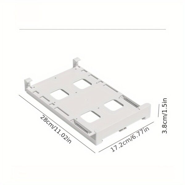 - تركيب متعدد الاستخدامات: يمكن تعليقه بسهولة أسفل أي رف داخل الثلاجة أو حتى على بابها من الداخل، مما يمنحك حرية اختيار أفضل مكان للتخزين يناسب تصميم ثلاجتك.