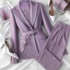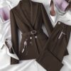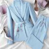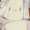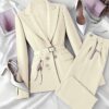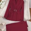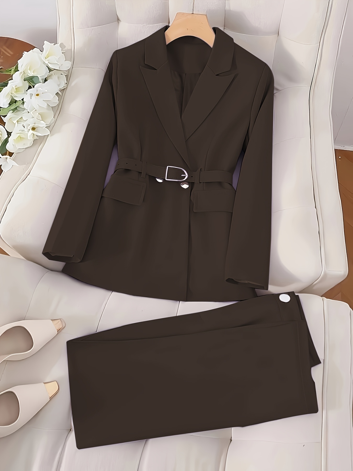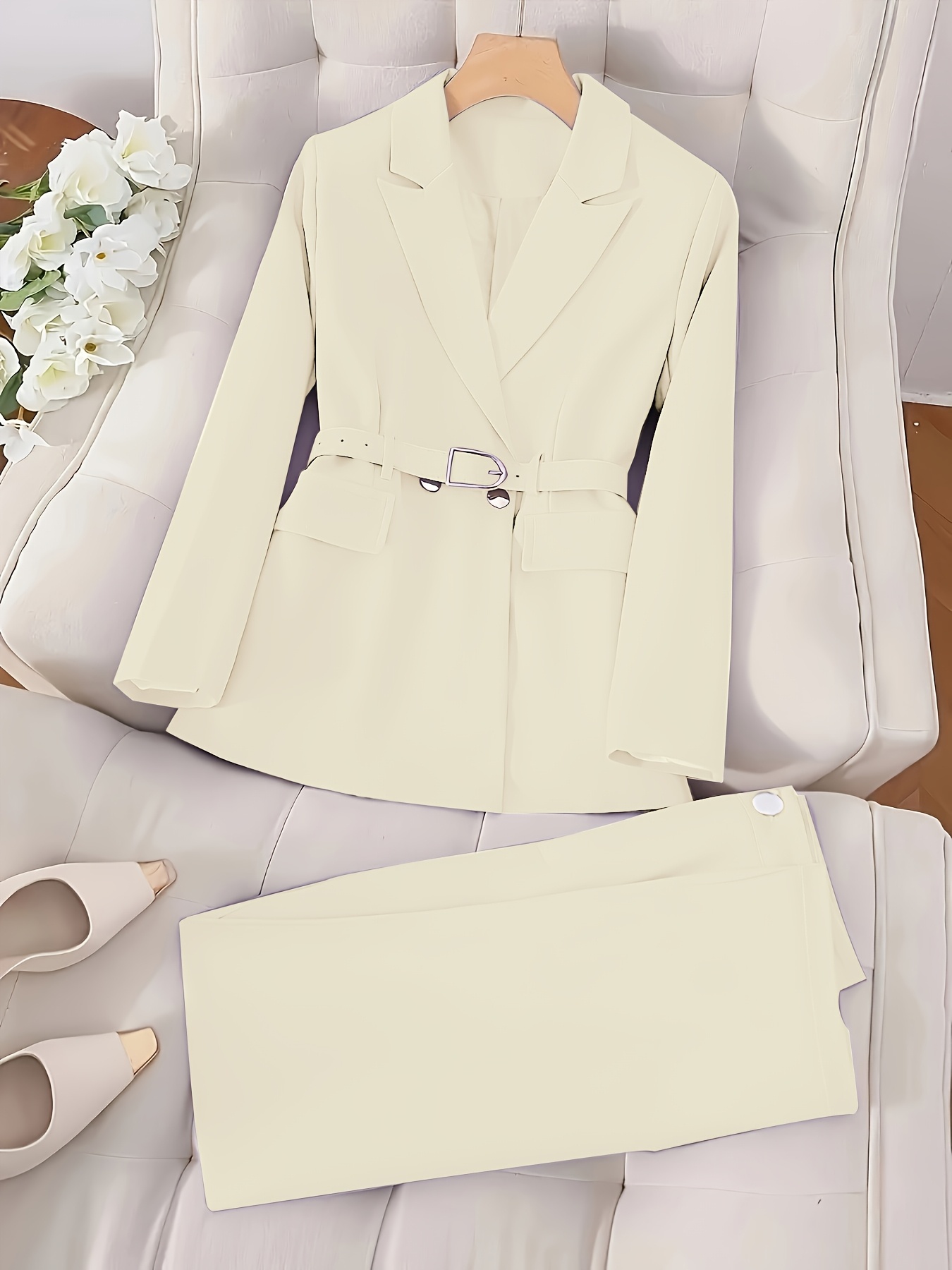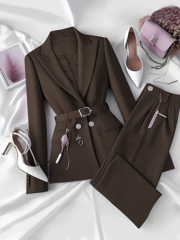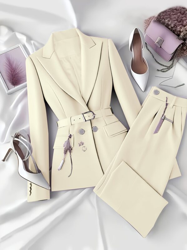 - حزام يبرز جمال قوامك: يأتي الطقم مرفقًا بحزام أنيق يحدد الخصر بشكل جميل، ليمنحك قوامًا رشيقًا وجذابًا ويعزز من أناقتك العامة.