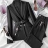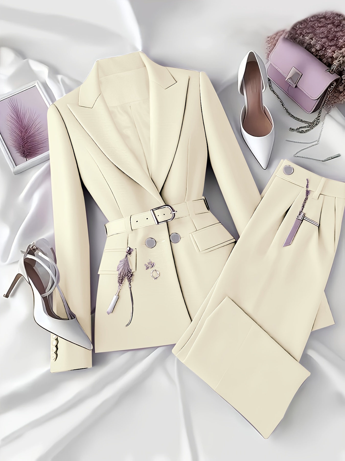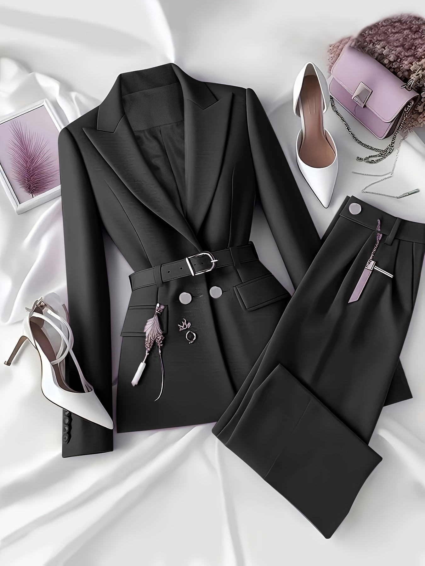 اخطفي الأنظار بأناقة عصرية لا مثيل لها مع طقم التنقل الحضري الرائع هذا. مصمم خصيصًا للمرأة العصرية التي تبحث عن مزيج مثالي بين الرقي والراحة، يقدم لك هذا الطقم المتكامل إطلالة جذابة ومريحة تناسب مختلف مناسباتك، من اجتماعات العمل إلى الخروجات المسائية في المدينة.