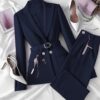 - تصميم يجمع بين الرقي والعملية: يتميز الطقم بلون موحد أنيق يمنحه مرونة لا متناهية في التنسيق، مع تفاصيل مدروسة مثل الجيوب العملية التي تضيف لمسة وظيفية دون المساومة على الأناقة.