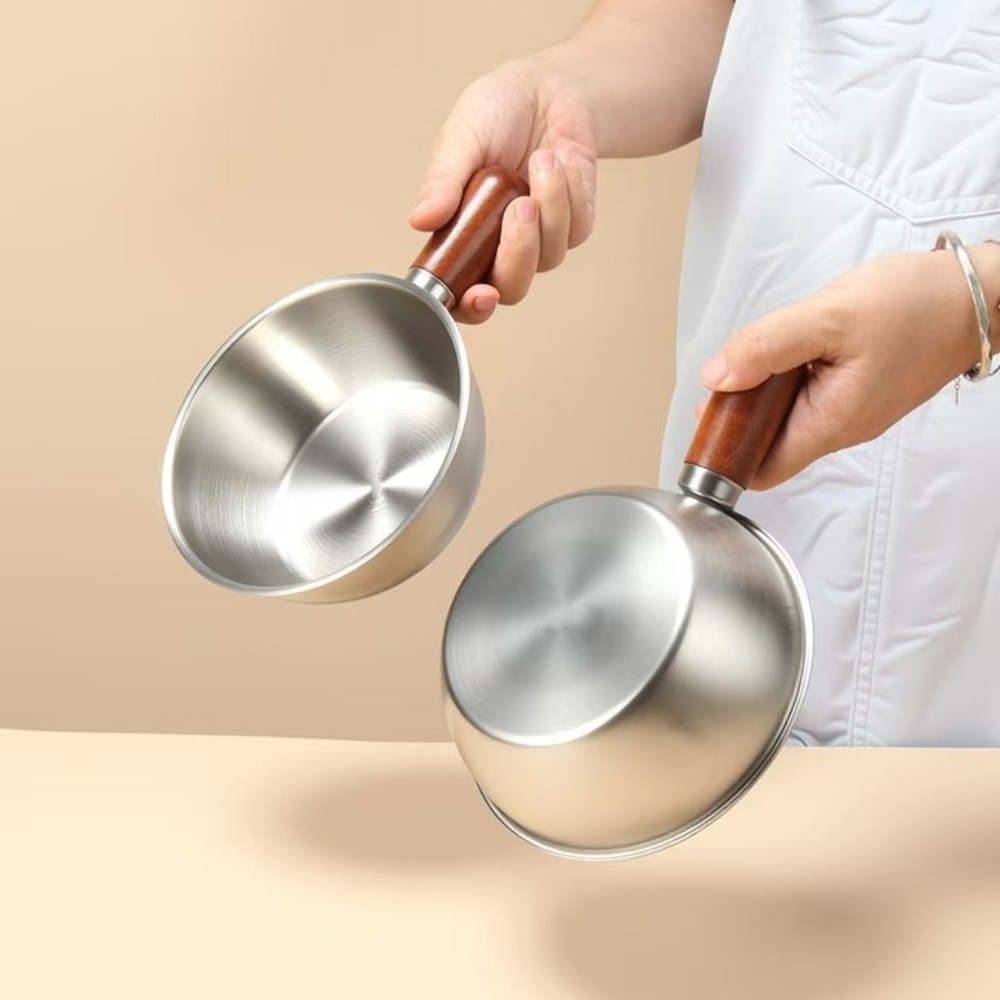 لمسة من الأناقة، قوة لا تضاهى: أواني الطهي الستانلس ستيل بمقبض خشبي