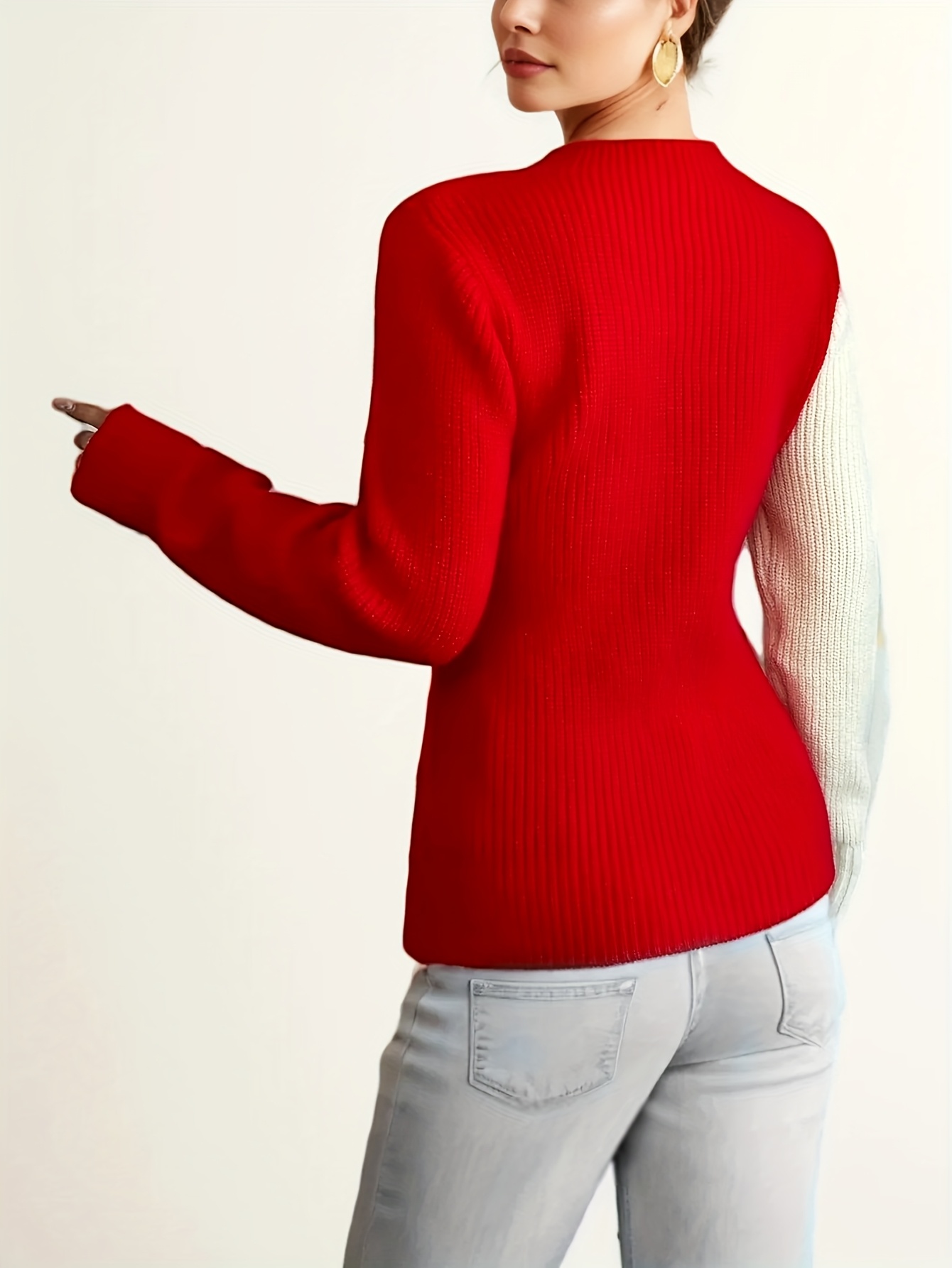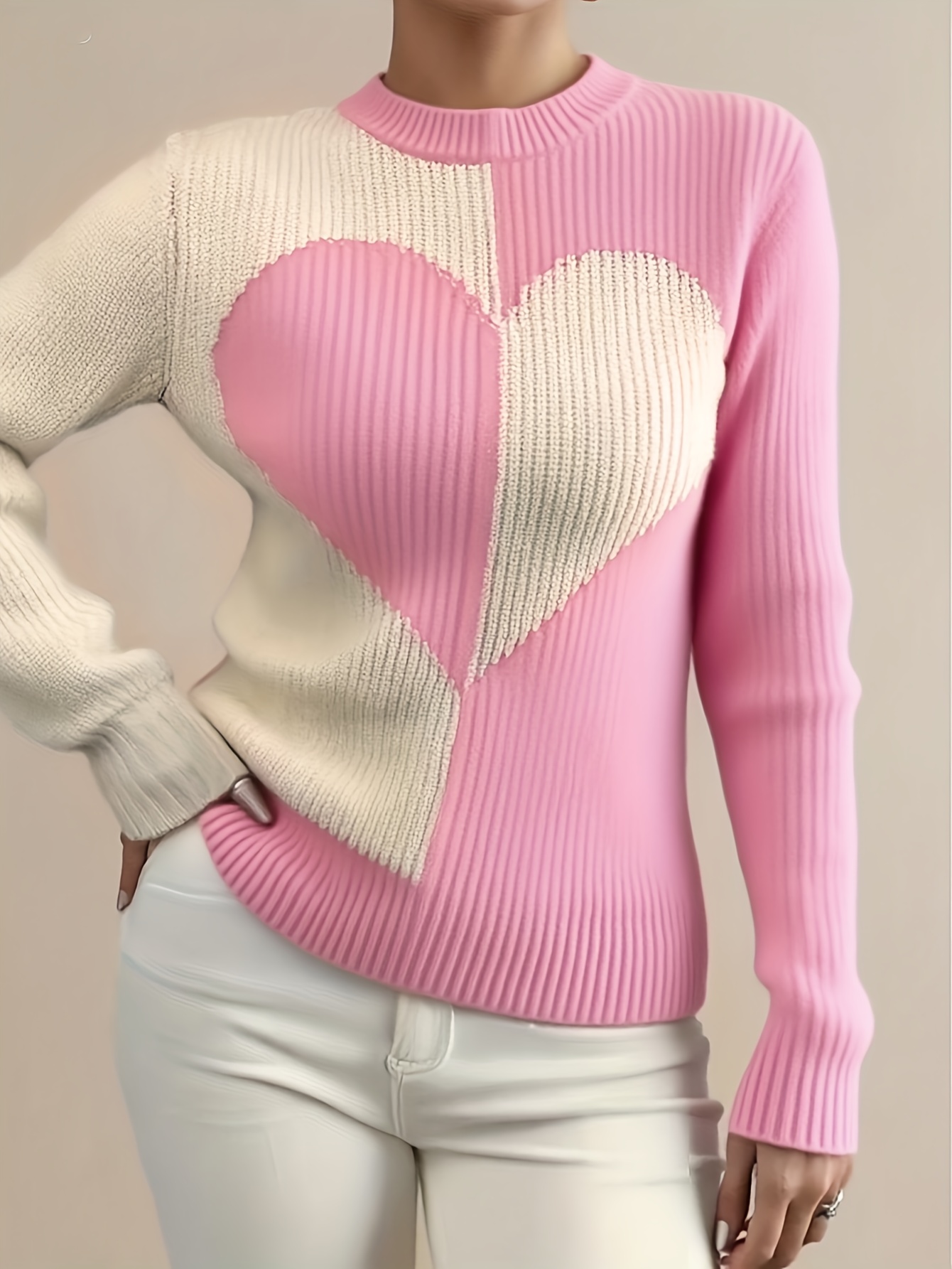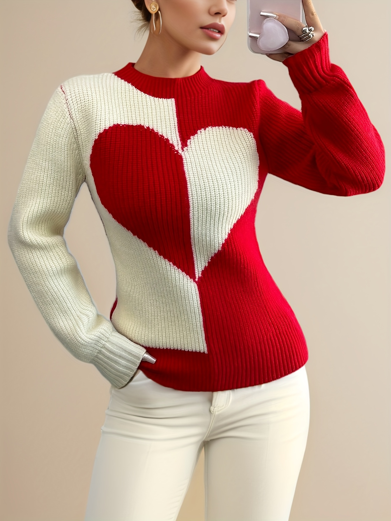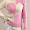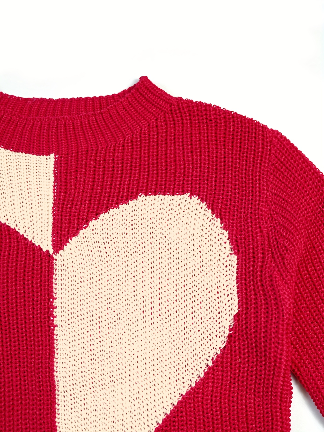 - تصميم فريد ومواكب للموضة: تتميز البلوزة بتصميم كتل الألوان الرائع، بالإضافة إلى نقشة القلوب الحمراء الساحرة التي تضفي عليها طابعاً جذاباً ومرحاً. ياقة مستديرة كلاسيكية تضمن لكِ إطلالة أنيقة ومريحة.