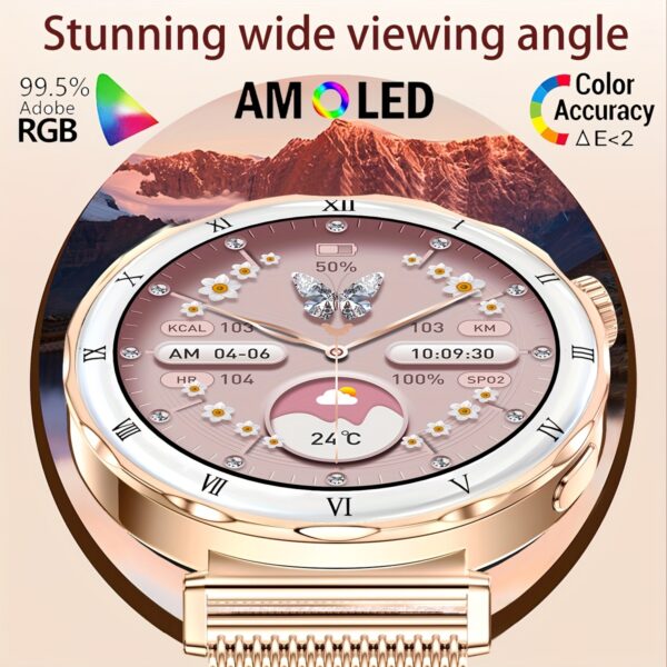 - شاشة AMOLED-HD فائقة الوضوح: استمتعي بألوان حيوية وتفاصيل مذهلة على شاشة عالية الدقة تضفي لمسة من الرقي على معصمك.