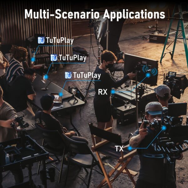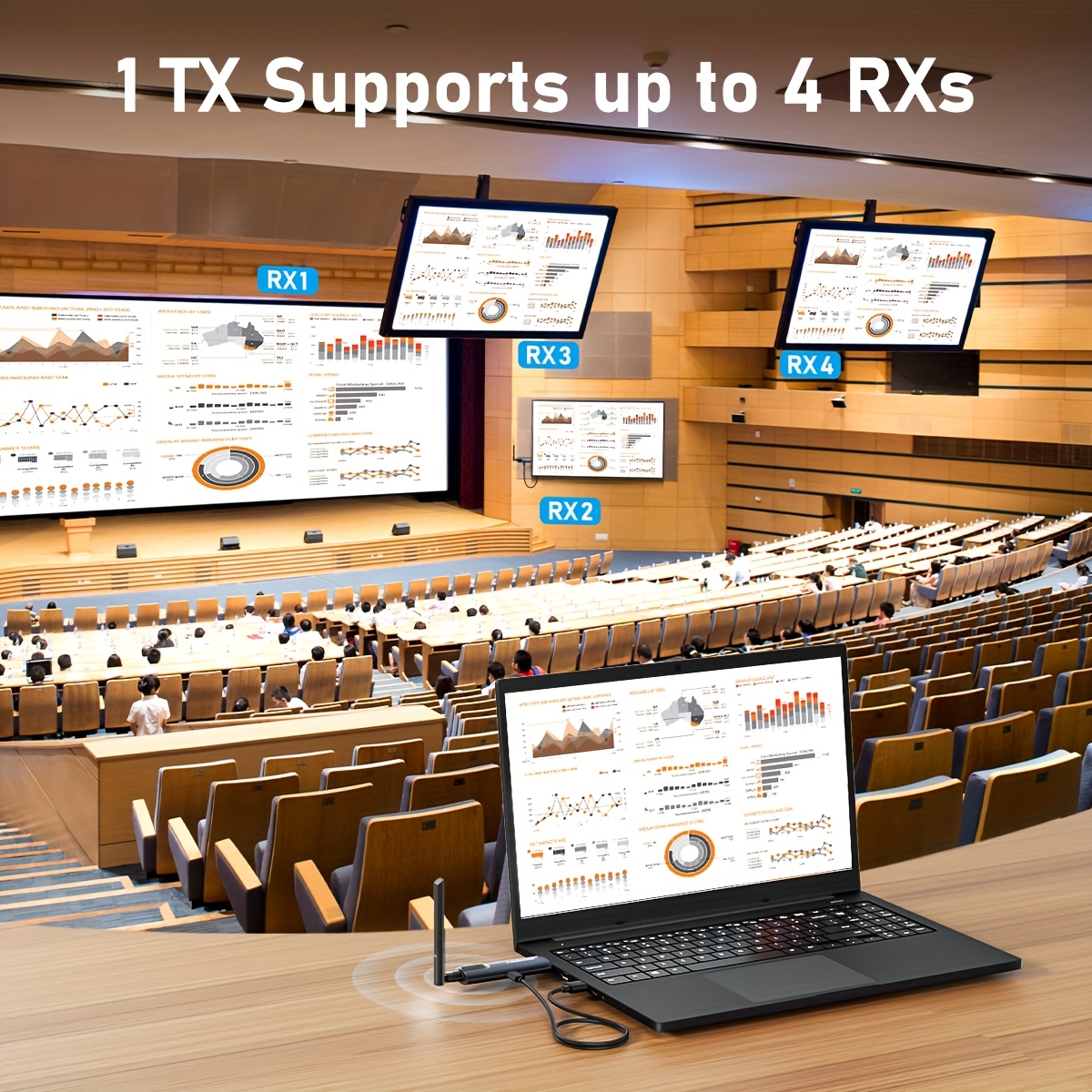 • اتصال متعدد الاستخدامات (1 إلى 3): يتميز جهاز الإرسال بالقدرة على الاتصال بثلاثة أجهزة استقبال في وقت واحد، مما يتيح لك بث المحتوى نفسه على شاشات متعددة في أماكن مختلفة بسهولة تامة.