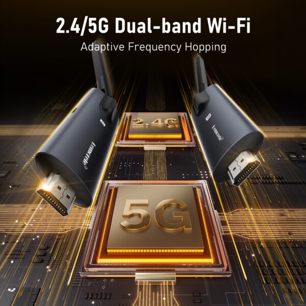 • نقل واستقبال لاسلكي عالي الدقة (HD): استمتع بصور فائقة الوضوح وصوت نقي تمامًا، دون الحاجة إلى كابلات متشابكة. حرية تامة في وضع شاشتك أو جهاز العرض حيثما تشاء.