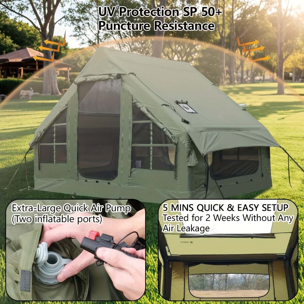 • Ultra-Easy Setup: Thanks to innovative inflatable technology, you can set up your tent in minutes effortlessly, allowing you to enjoy your precious time instead of spending it on traditional assembly.