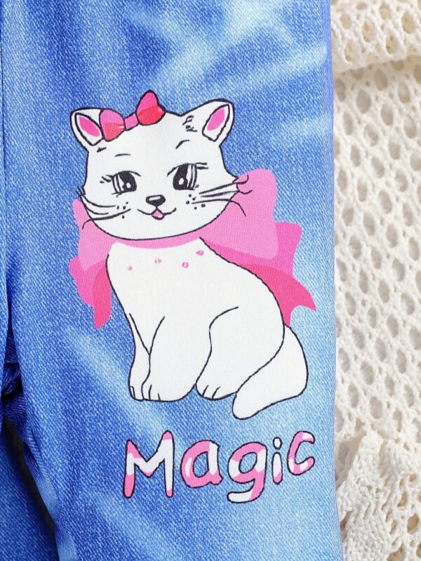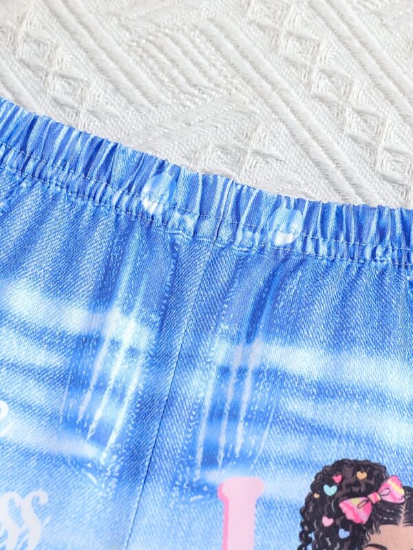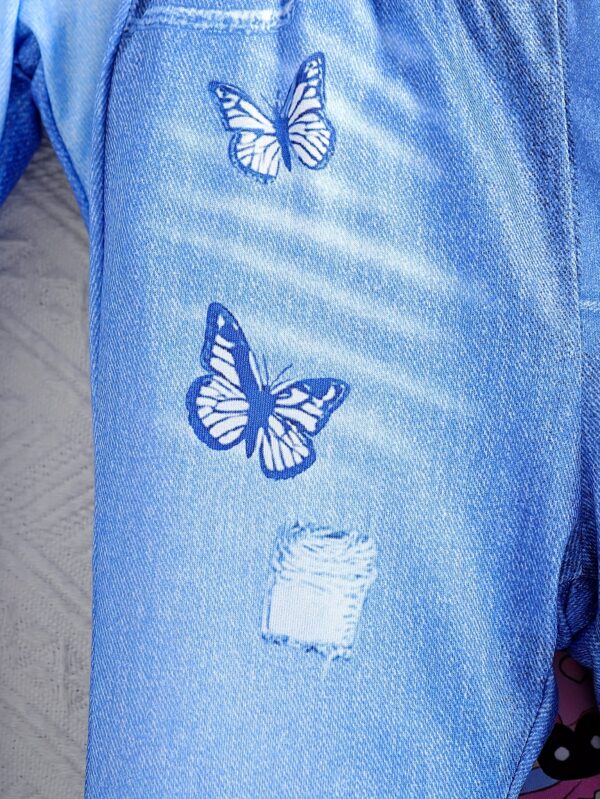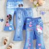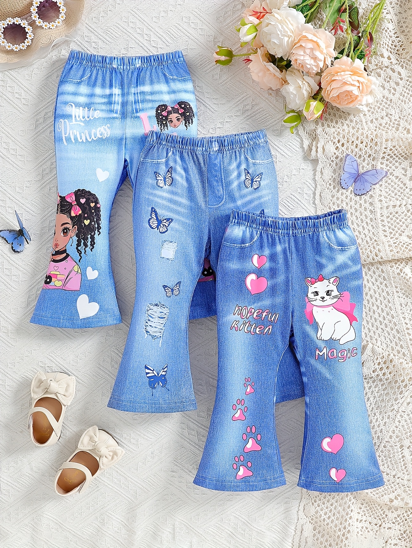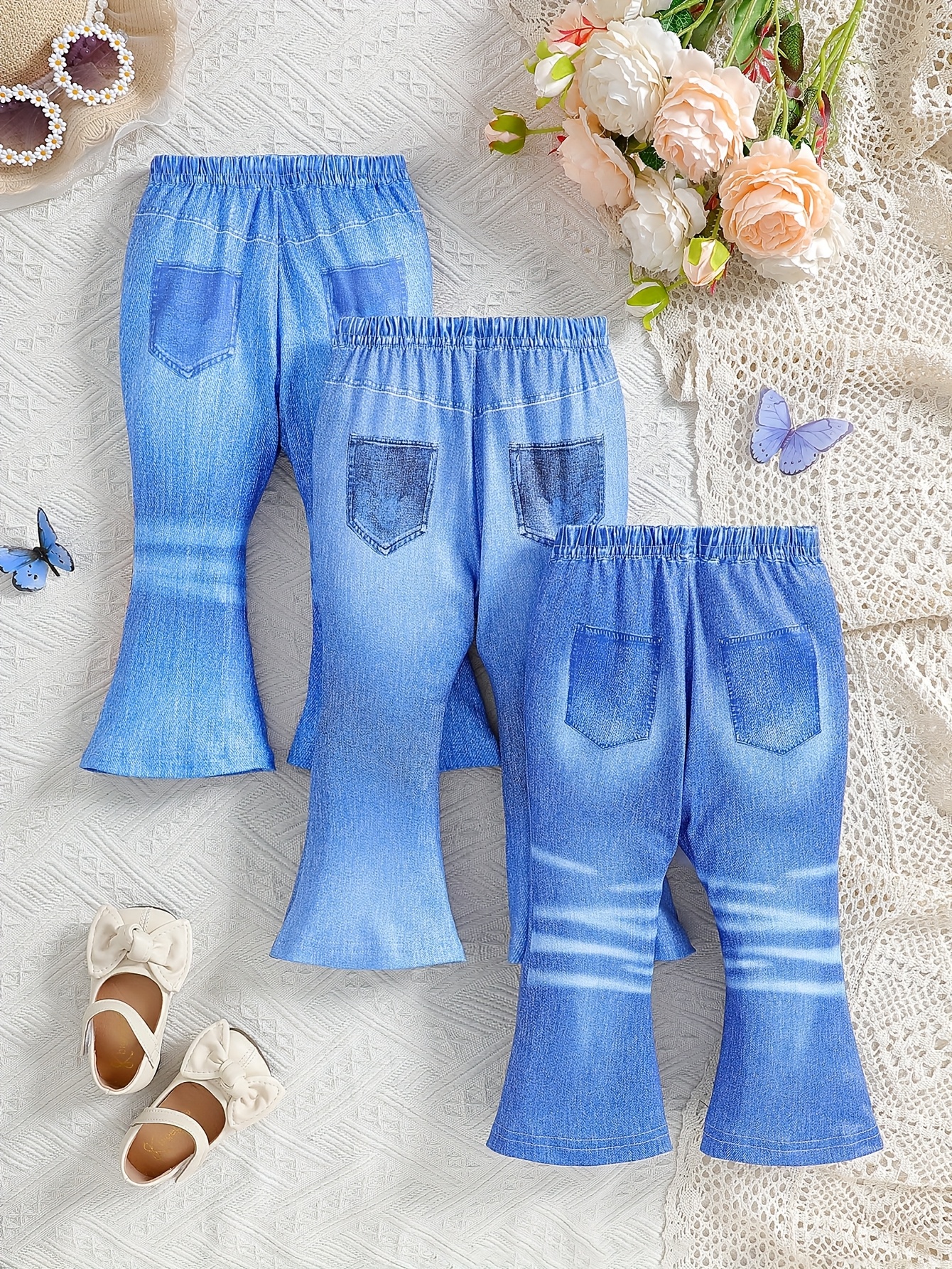 صيف طفلتك يتألق: طقم ثلاثي عصري ببنطال جرس بطبعة الجينز الكاذب!