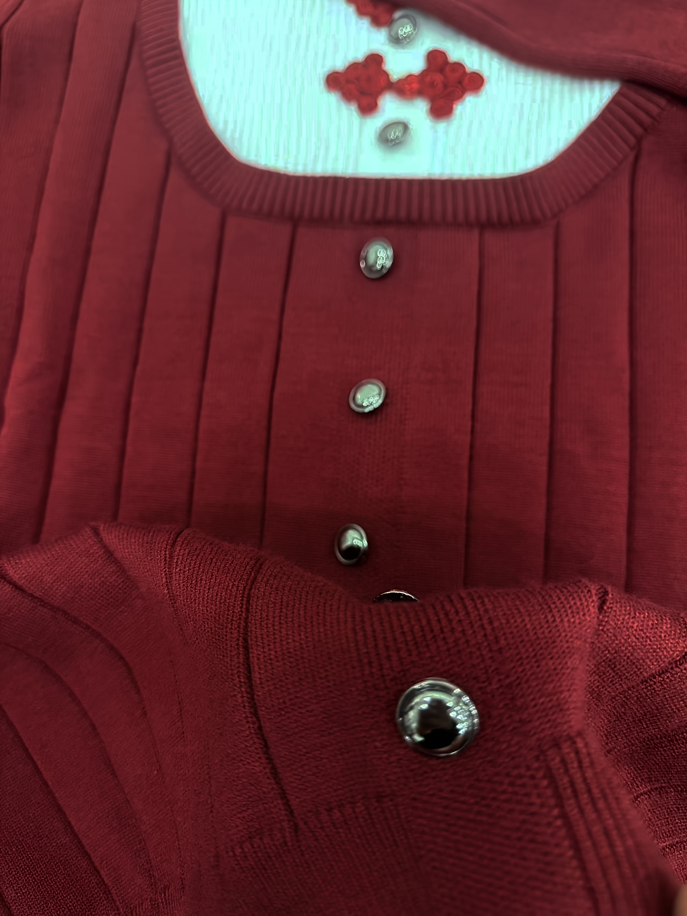 - تصميم مبتكر “وهمي بقطعتين”: تتميز هذه الكنزة ببراعة تصميمها الذي يعطي انطباعاً بأنها قطعتان منفصلتان، مع تفاصيل أزرار جميلة وياقة الماندرين الأنيقة، لتضفي لمسة من التميز والأصالة على إطلالتك.