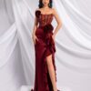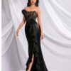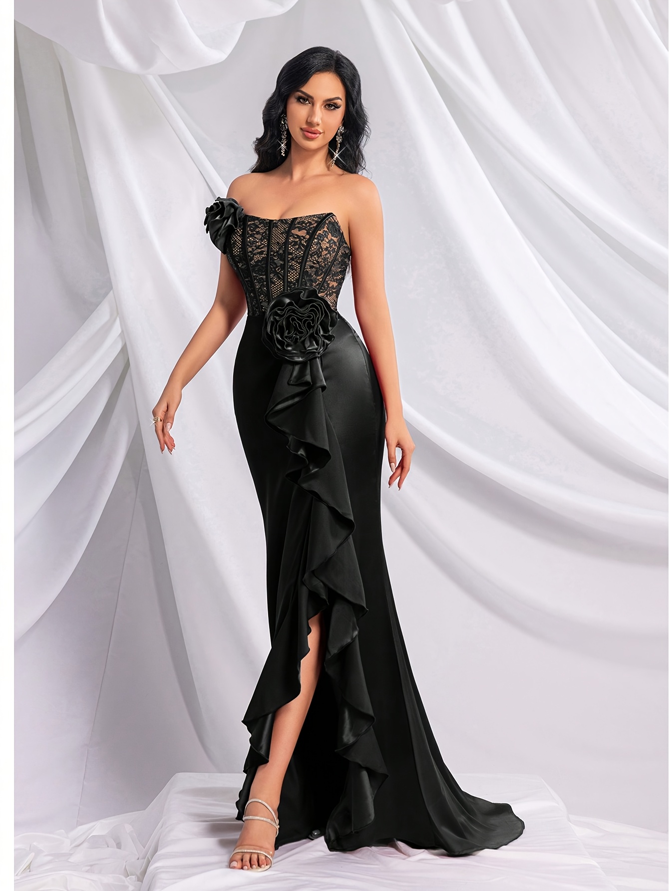 فستان السهرة الساحر: تصميم بكسرات، دانتيل، وزهور ثلاثية الأبعاد