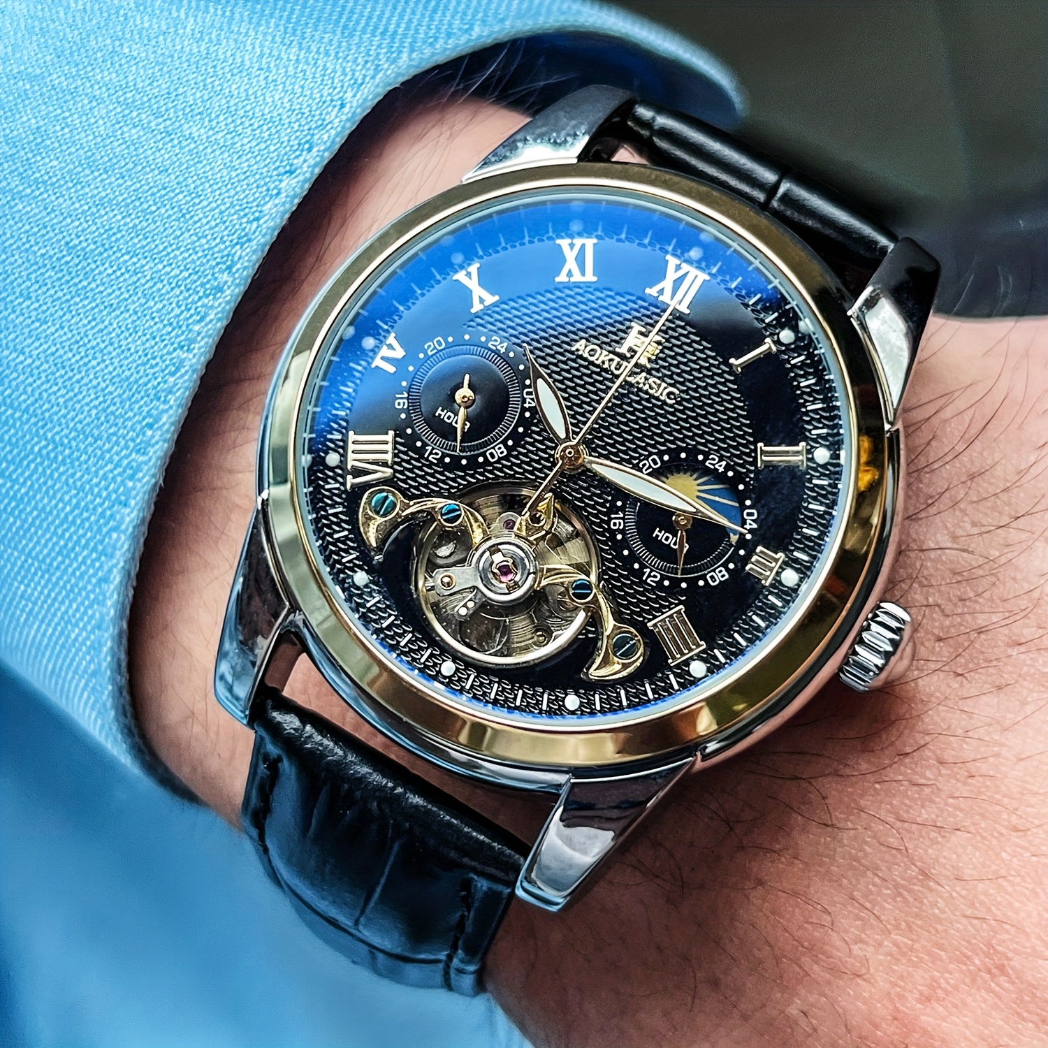 - أناقة متعددة الاستخدامات: صُممت لتلائم الرجل العصري في كل جوانب حياته، تجمع هذه الساعة بين أناقة الأعمال الرسمية والطابع الكاجوال الفاخر، مما يجعلها الخيار الأمثل لكل مناسبة.