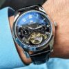- تصميم هيكلي شفاف مذهل: شاهد الجمال الهندسي المعقد الذي يدفع الزمن إلى الأمام. يتيح لك التصميم الهيكلي الفريد رؤية التروس والحركة الداخلية الدقيقة، مما يجعلها تحفة فنية نابضة بالحياة.