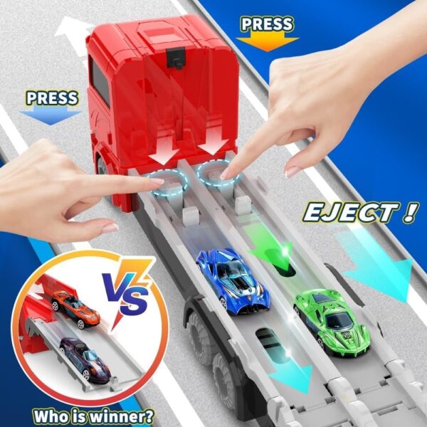 - مضمار سباق مزدوج ومنافسة شرسة: تتضمن اللعبة مضمارًا مزدوجًا يسمح لسيارتين معدنيتين عاليتي الجودة (مرفقتين) بالتنافس جنبًا إلى جنب، لخلق جو من الإثارة والتحدي بين الأصدقاء.
