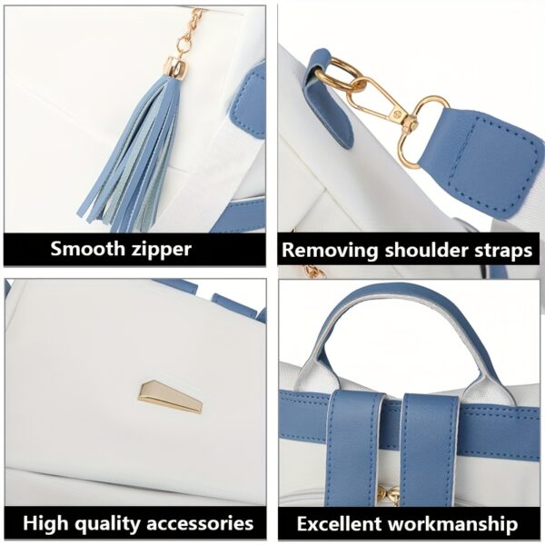 - تصميم أنيق ومضاد للسرقة: تتميز الحقيبة بتصميمها الذكي الذي يضمن حماية مقتنياتك الثمينة، مع إضفاء لمسة من الرقي والجاذبية من خلال لونها الأبيض النقي وتفاصيلها الوردية المذهلة.