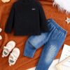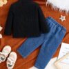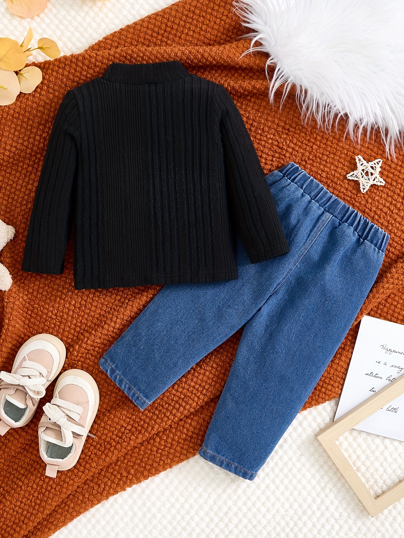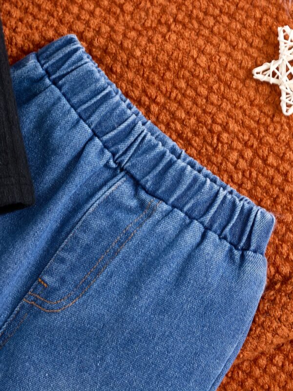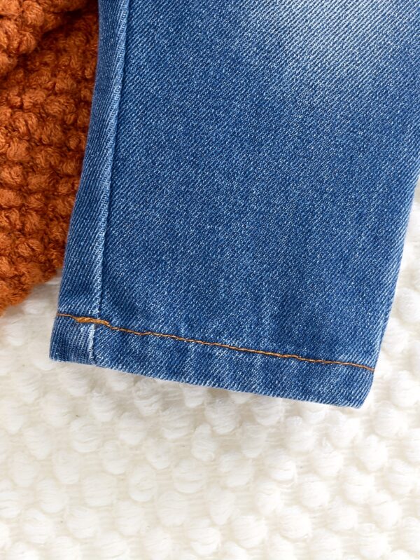 • بنطلون دنيم عملي ومريح: بنطلون دنيم كاجوال بخصر مطاطي يمنح صغيرك حرية الحركة دون قيود. مصنوع من مزيج ناعم وغني بالقطن (95% قطن، 5% بوليستر) لراحة تدوم طوال اليوم، وبلون موحد يسهل تنسيقه مع مختلف الإطلالات.