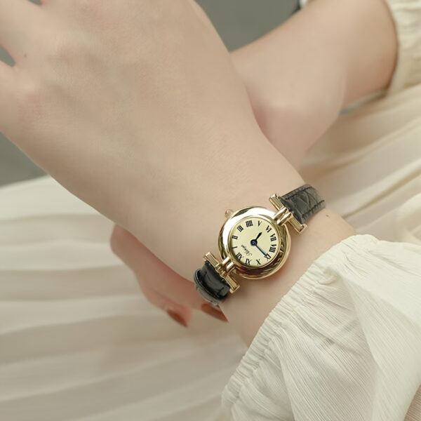 اكتشفي الأناقة الخالدة مع هذه الساعة النسائية الرائعة المستوحاة من سحر الزمن الغابر. مصممة للمرأة التي تقدر اللمسات الكلاسيكية والتفاصيل الفريدة، هذه الساعة ليست مجرد أداة لمعرفة الوقت، بل هي قطعة فنية تزين معصمك وتضفي عليكِ جاذبية لا مثيل لها.