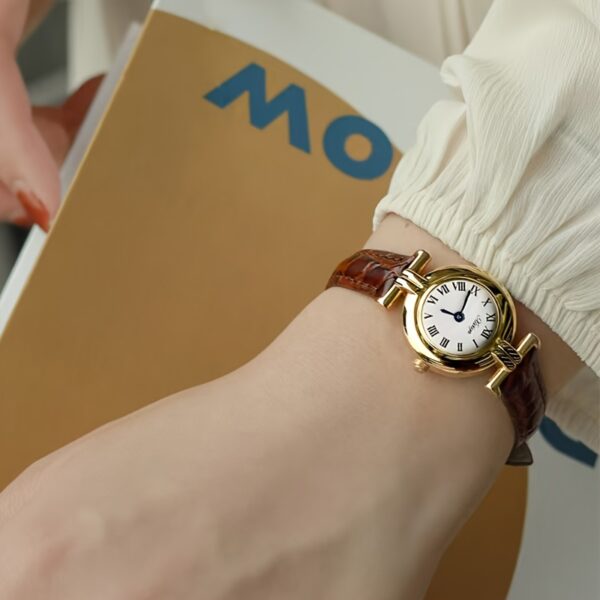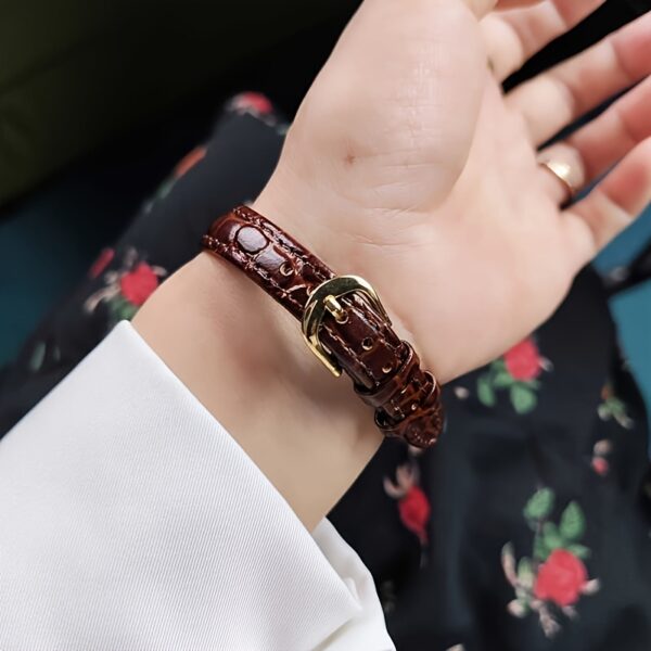 - حركة كوارتز دقيقة: تمتعي بدقة متناهية في عرض الوقت بفضل حركة الكوارتز الموثوقة، مما يضمن لكِ عدم تفويت أي لحظة مهمة.
