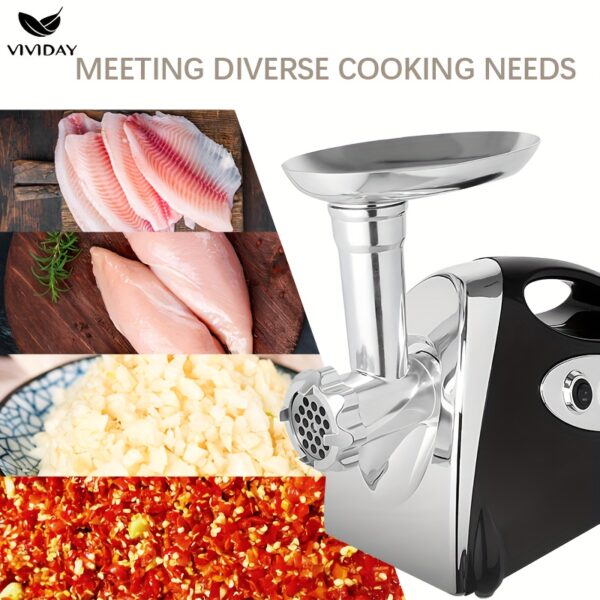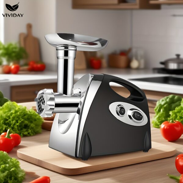 هل سئمت من عناء تحضير اللحوم والبهارات يدوياً؟ هل تبحث عن رفيق مطبخ ينجز المهام الصعبة بسهولة وفعالية؟ نقدم لك مطحنة اللحوم الكهربائية VIVIDAY، الحل الأمثل لتحويل مطبخك إلى واحة من السرعة والراحة! مصممة لتحرير يديك وتوفير وقتك الثمين، لتستمتع بتحضير أشهى الأطباق لأحبابك في كل المناسبات.
