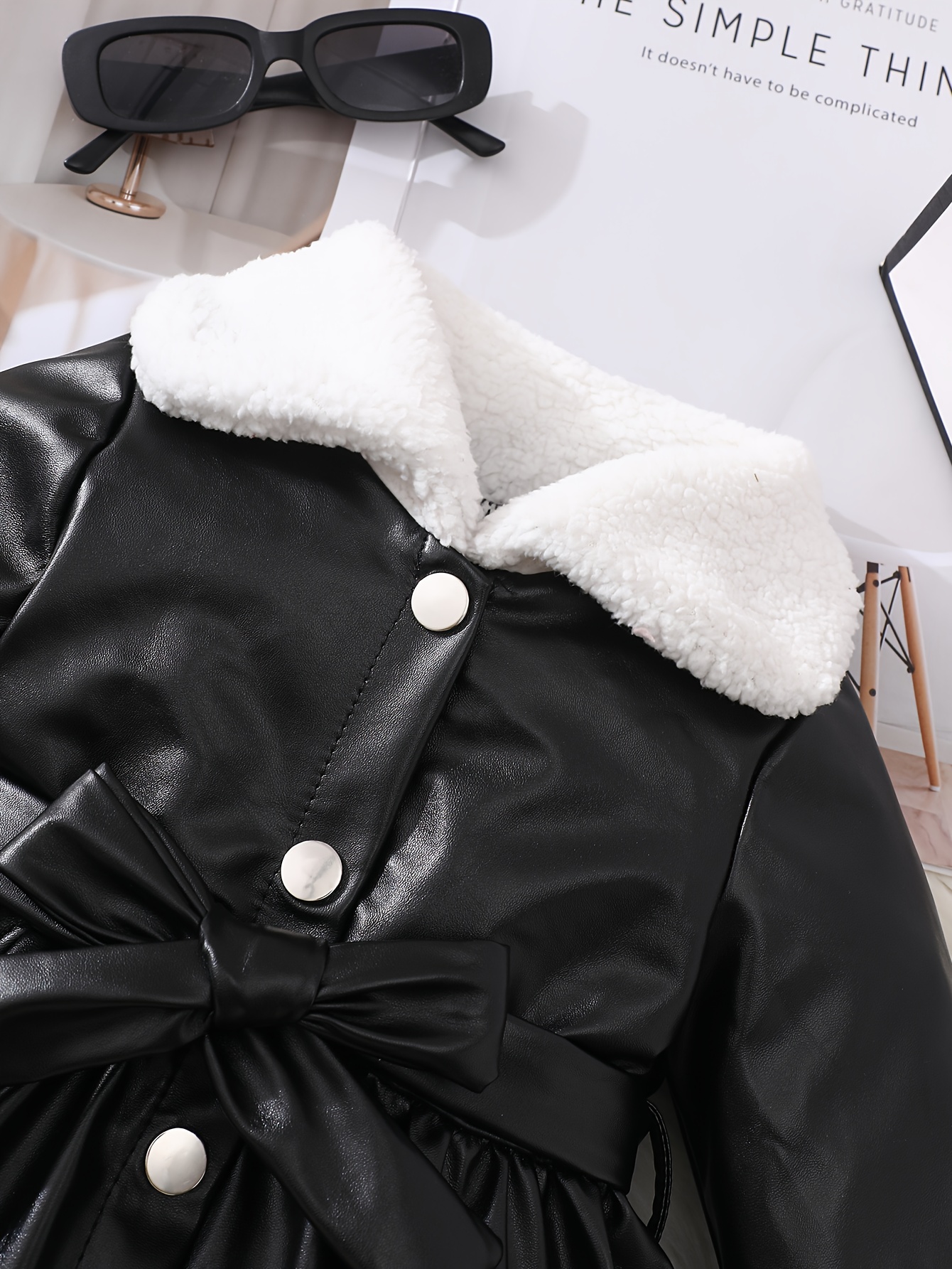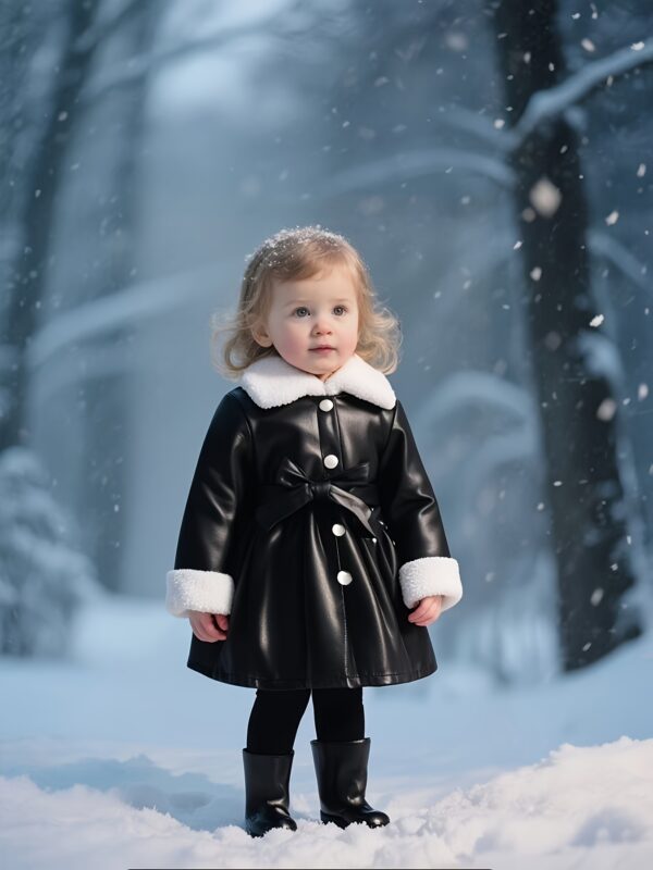 • المادة الفاخرة والمتينة: مصنوع من مادة البولي يوريثان عالية الجودة التي تحاكي الجلد الفاخر، لتمنح صغيرتك إطلالة راقية مع توفير المتانة ومقاومة خفيفة للعوامل الجوية، مثالي للعب والمغامرات الشتوية.