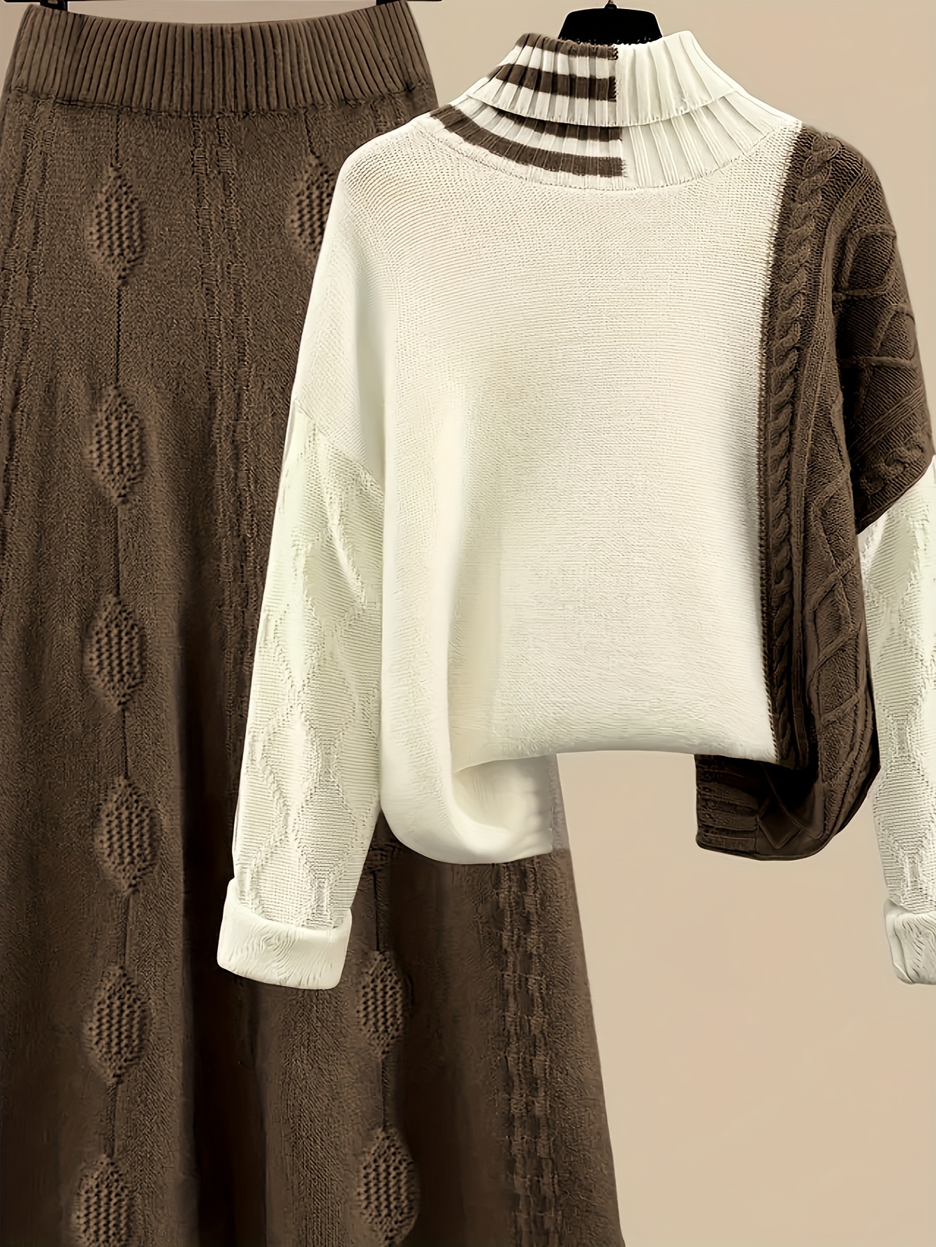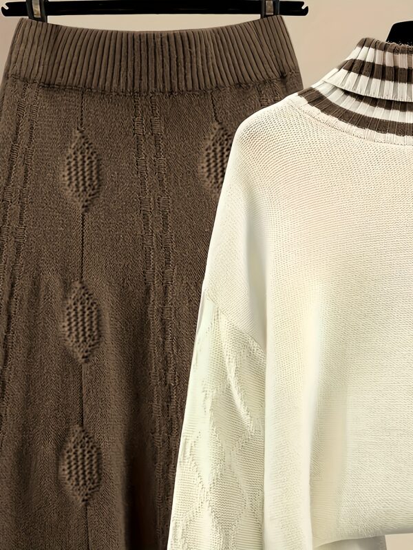 - إطلالة متكاملة وأنيقة: يأتي الطقم بياقة عالية وأكمام طويلة، مما يجعله الخيار الأمثل لإطلالة راقية ومتكاملة، سواء للعمل أو للترفيه.